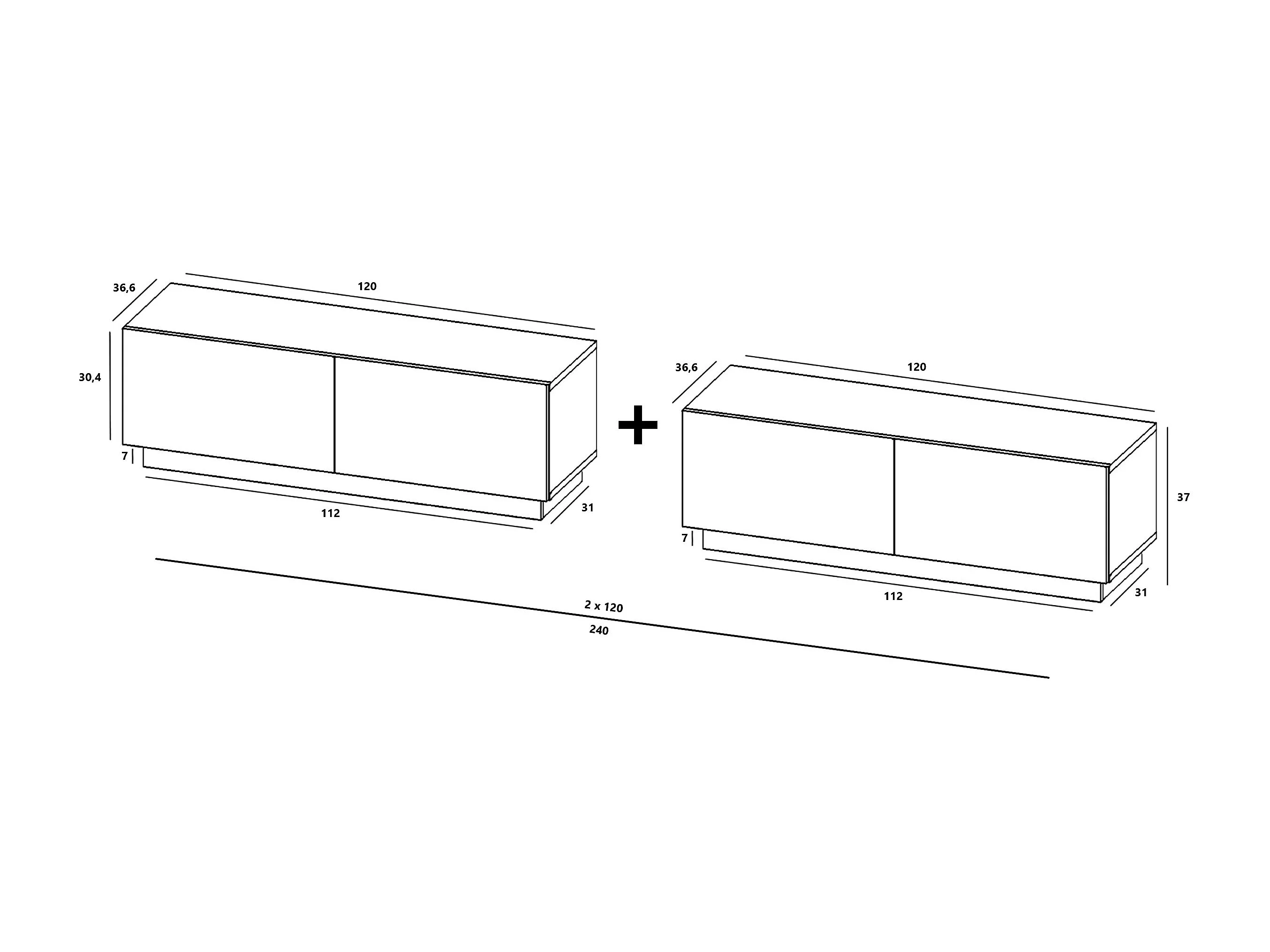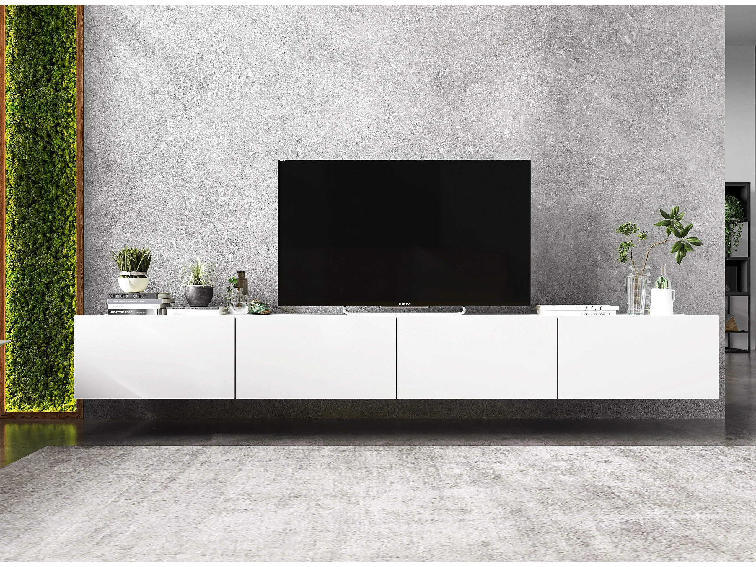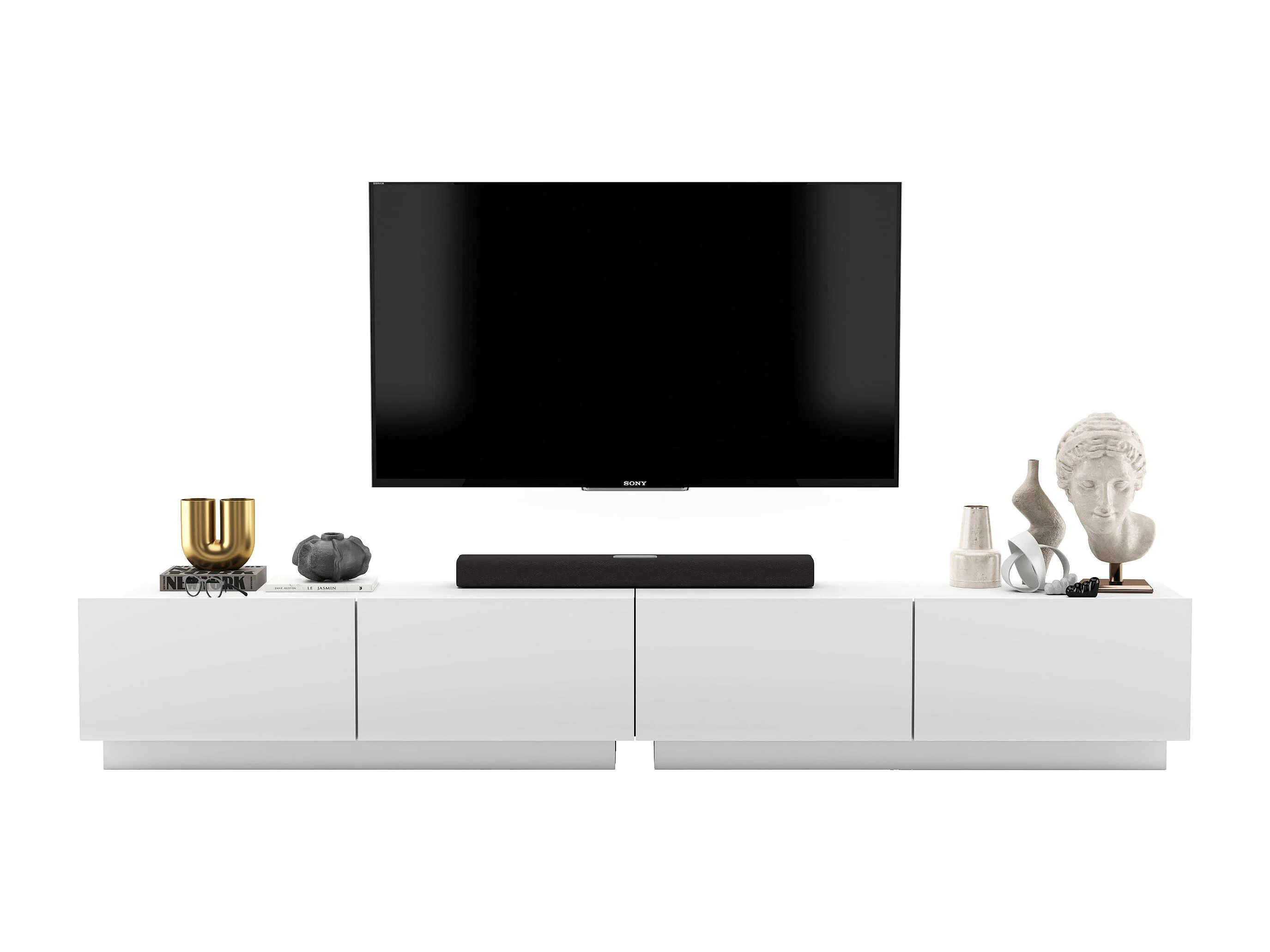 Meuble TV avec 4 portes - corps Blanc mat, façades Blanc mat - 240 cm, sur socle