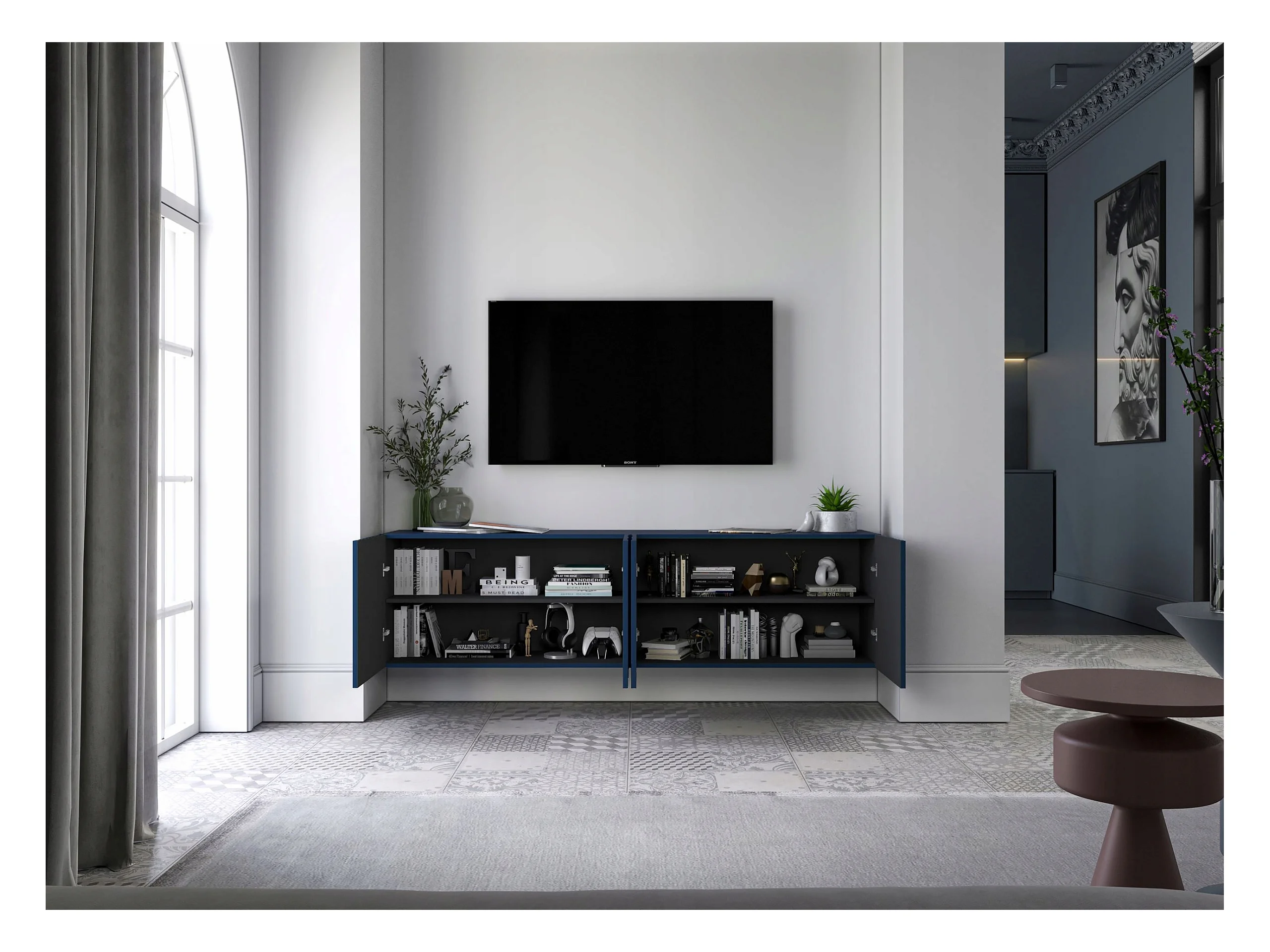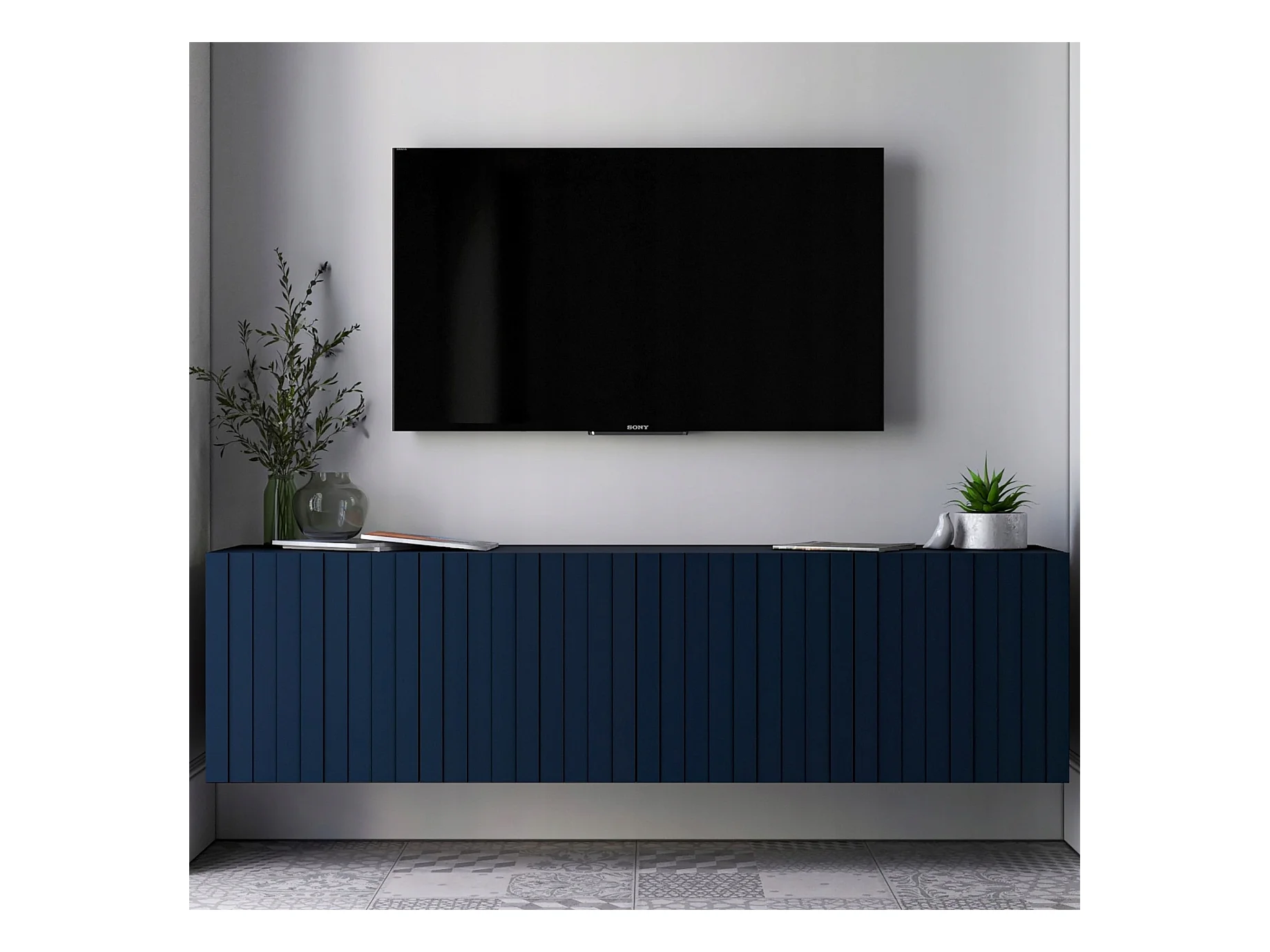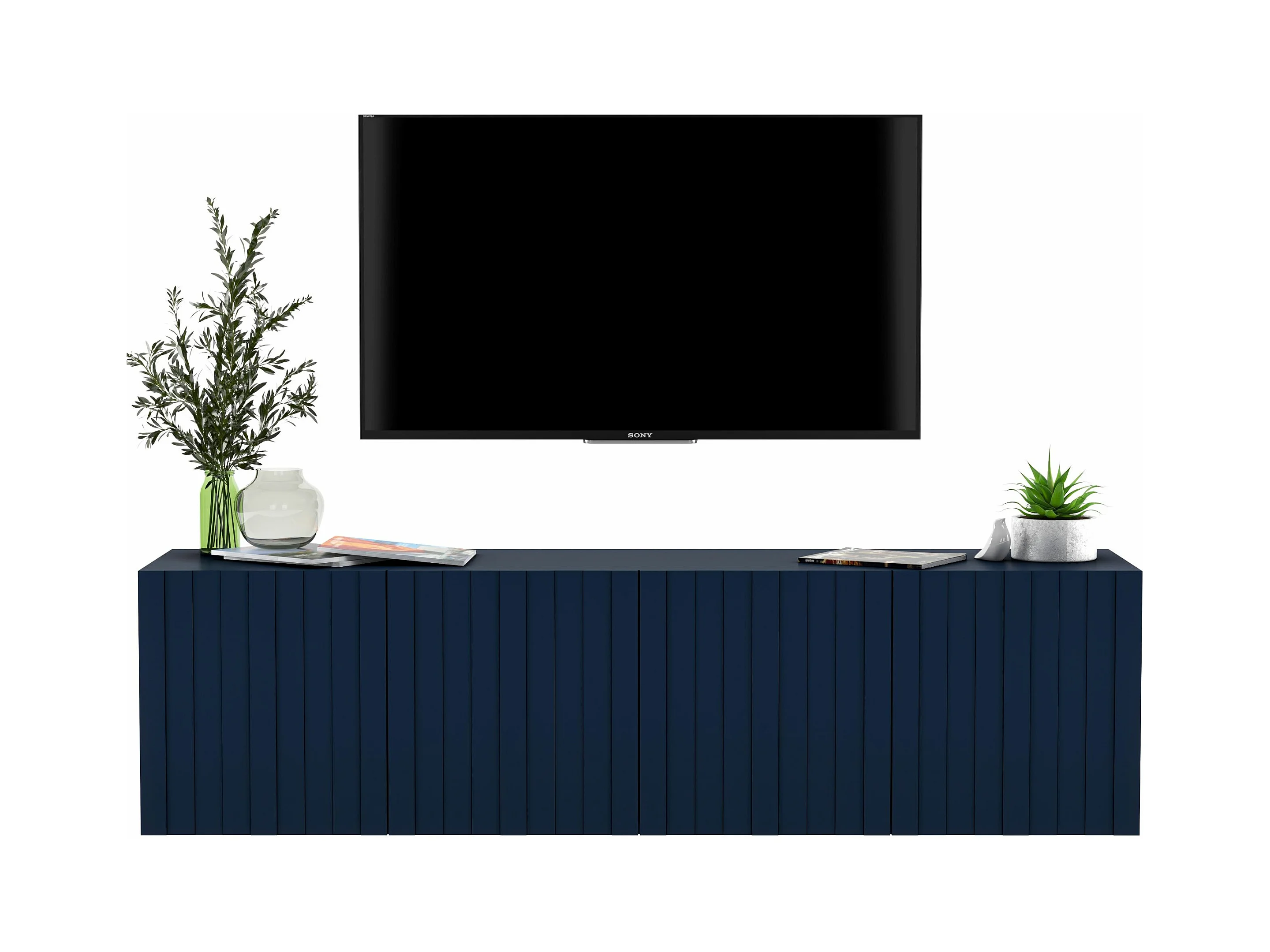 Meuble TV avec 4 portes - Corps Bleu marine mat, façades rainurées Bleu marine mat - 150 cm