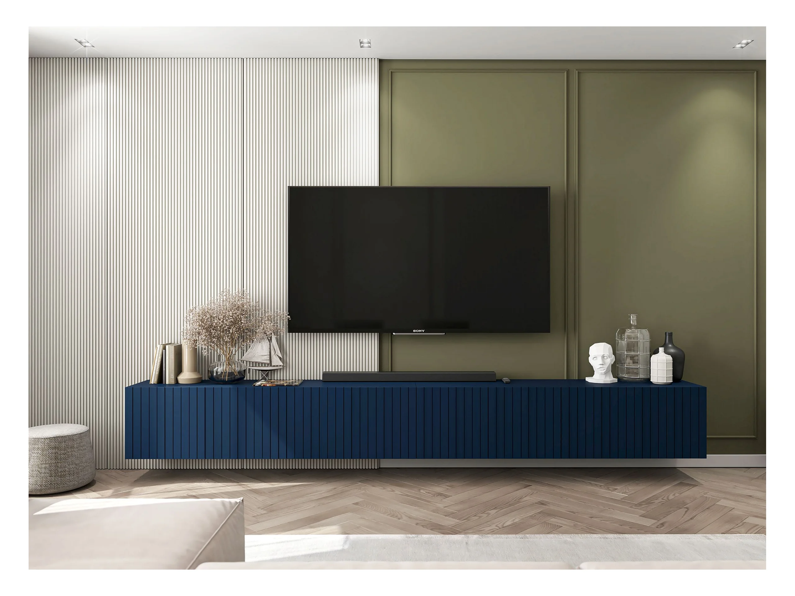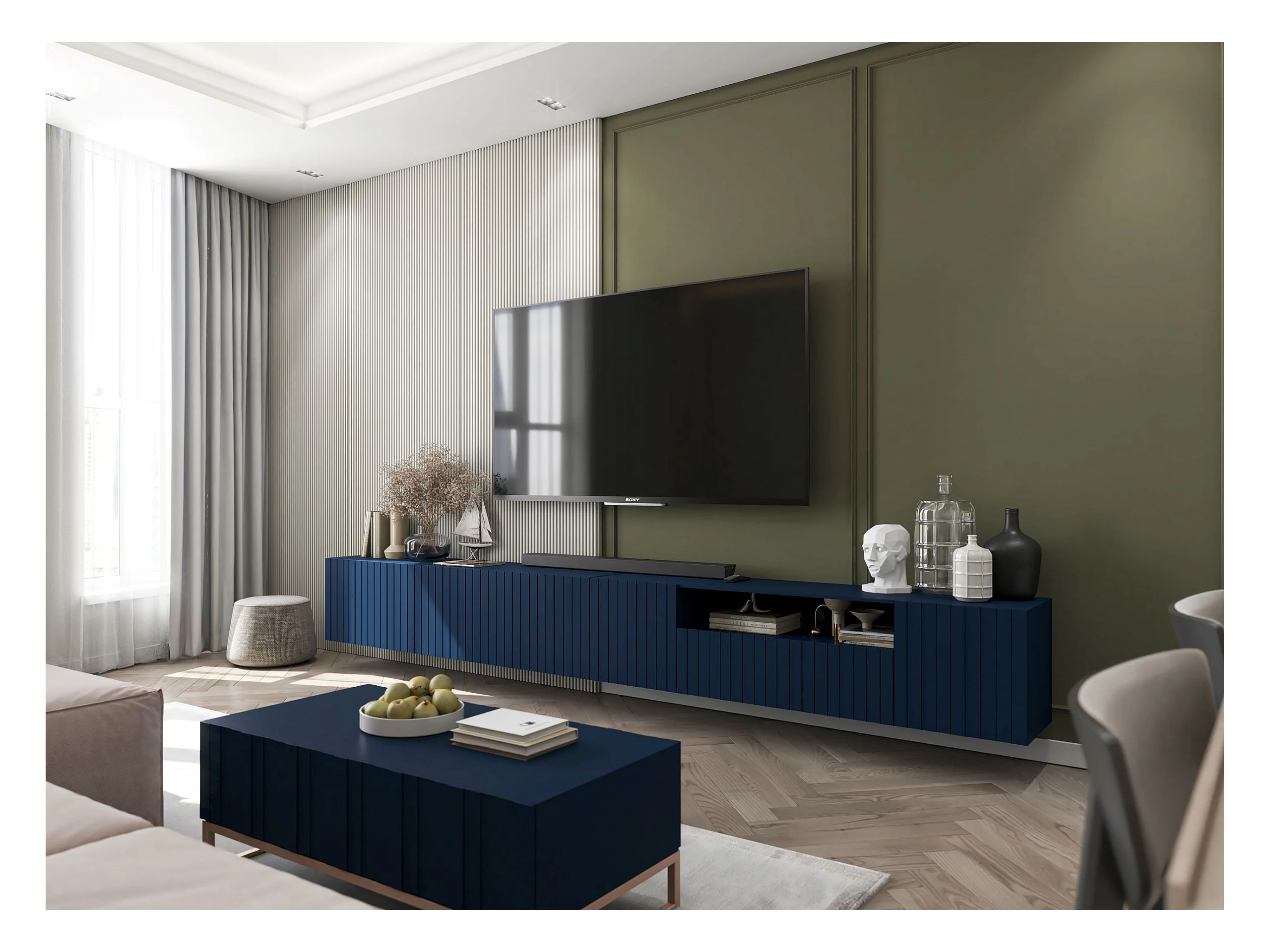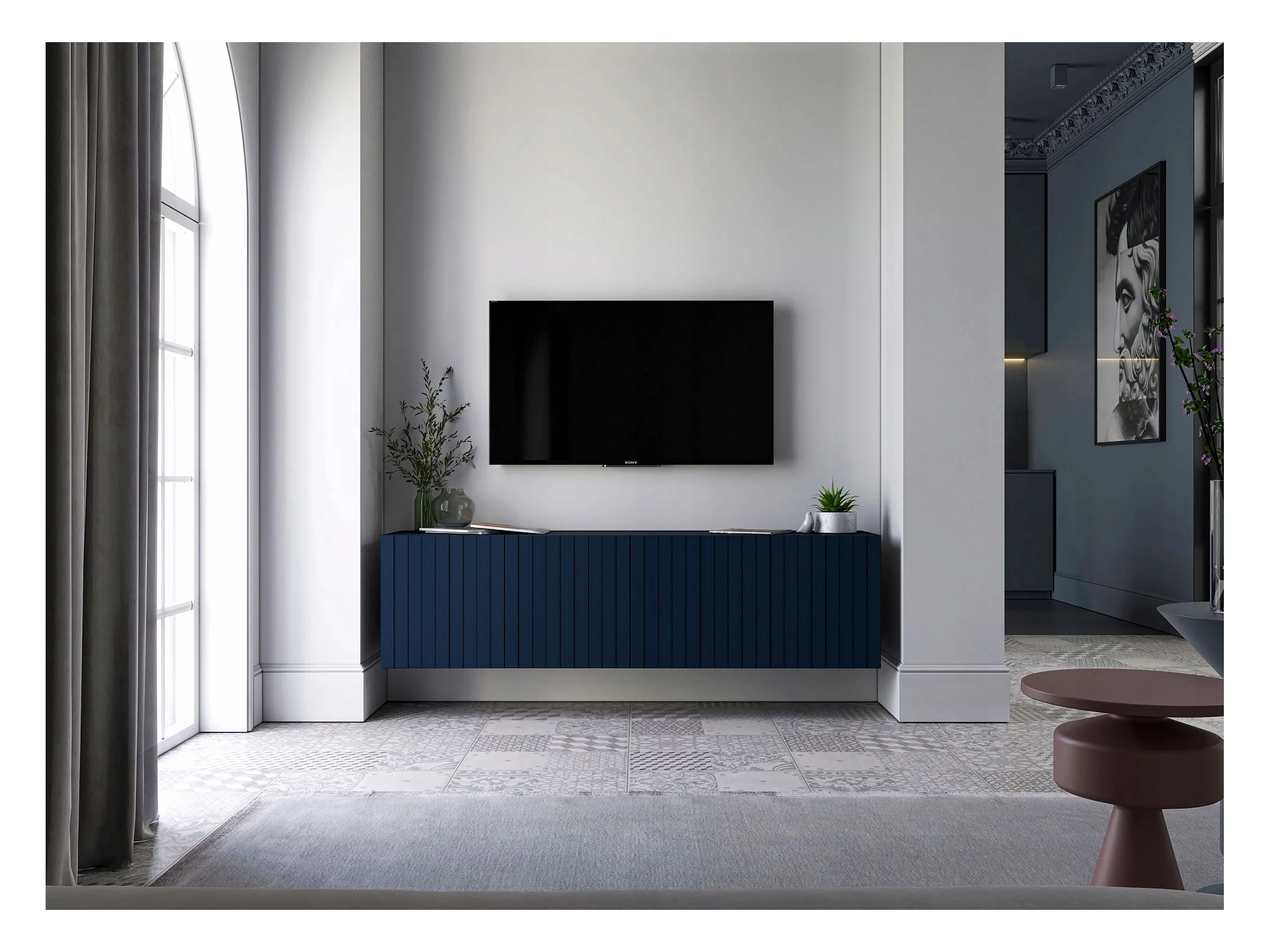 Meuble TV avec 4 portes - Corps Bleu marine mat, façades rainurées Bleu marine mat - 150 cm