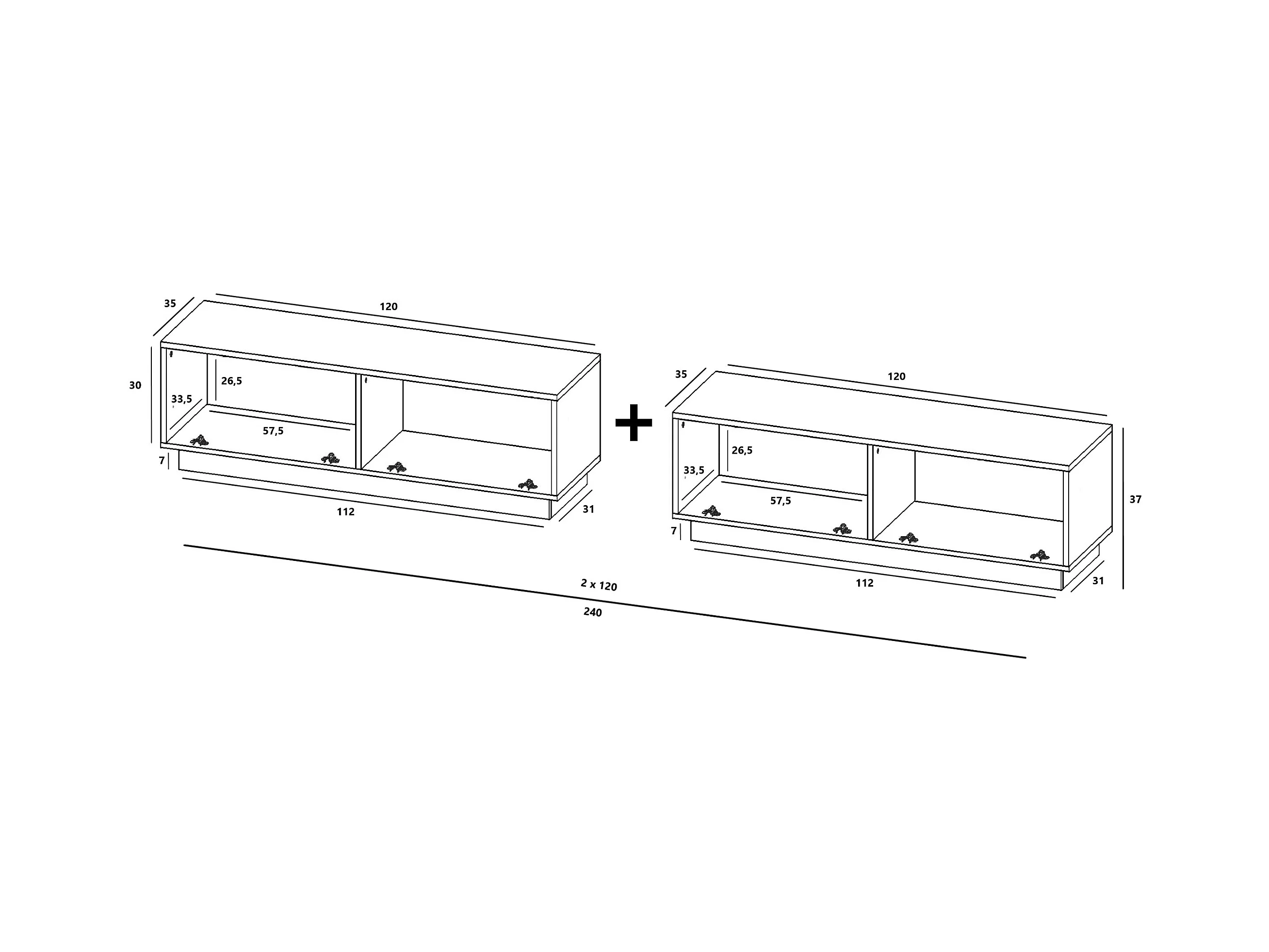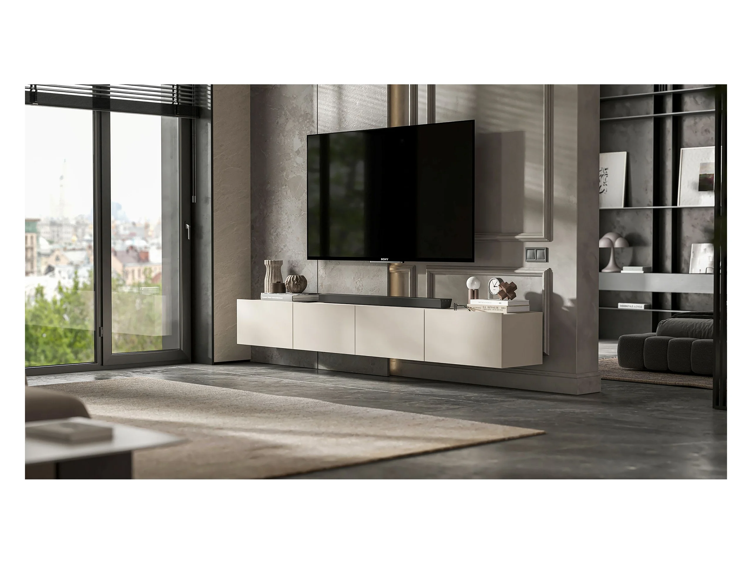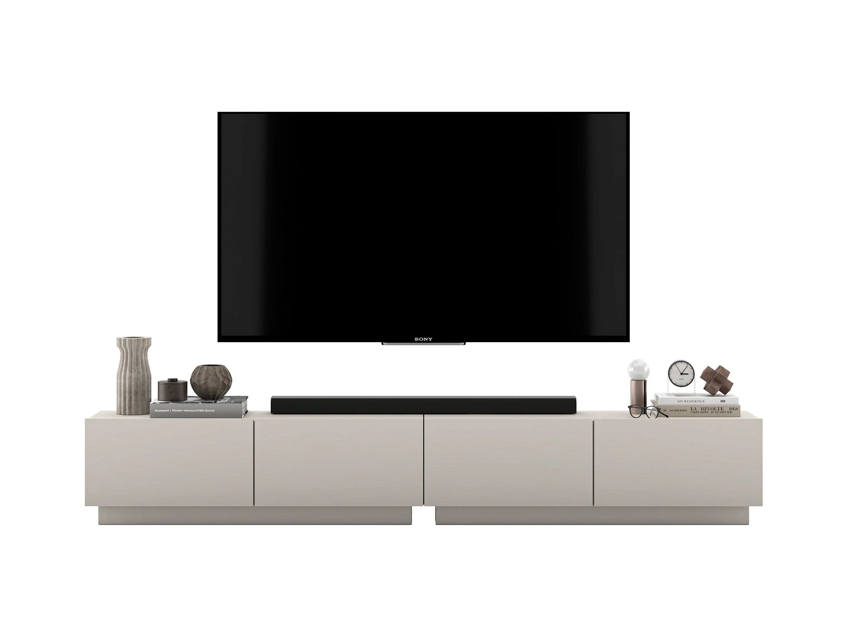 Meuble TV avec 4 portes - corps Cachemire mat, façades Cachemire mat - 240 cm, sur socle