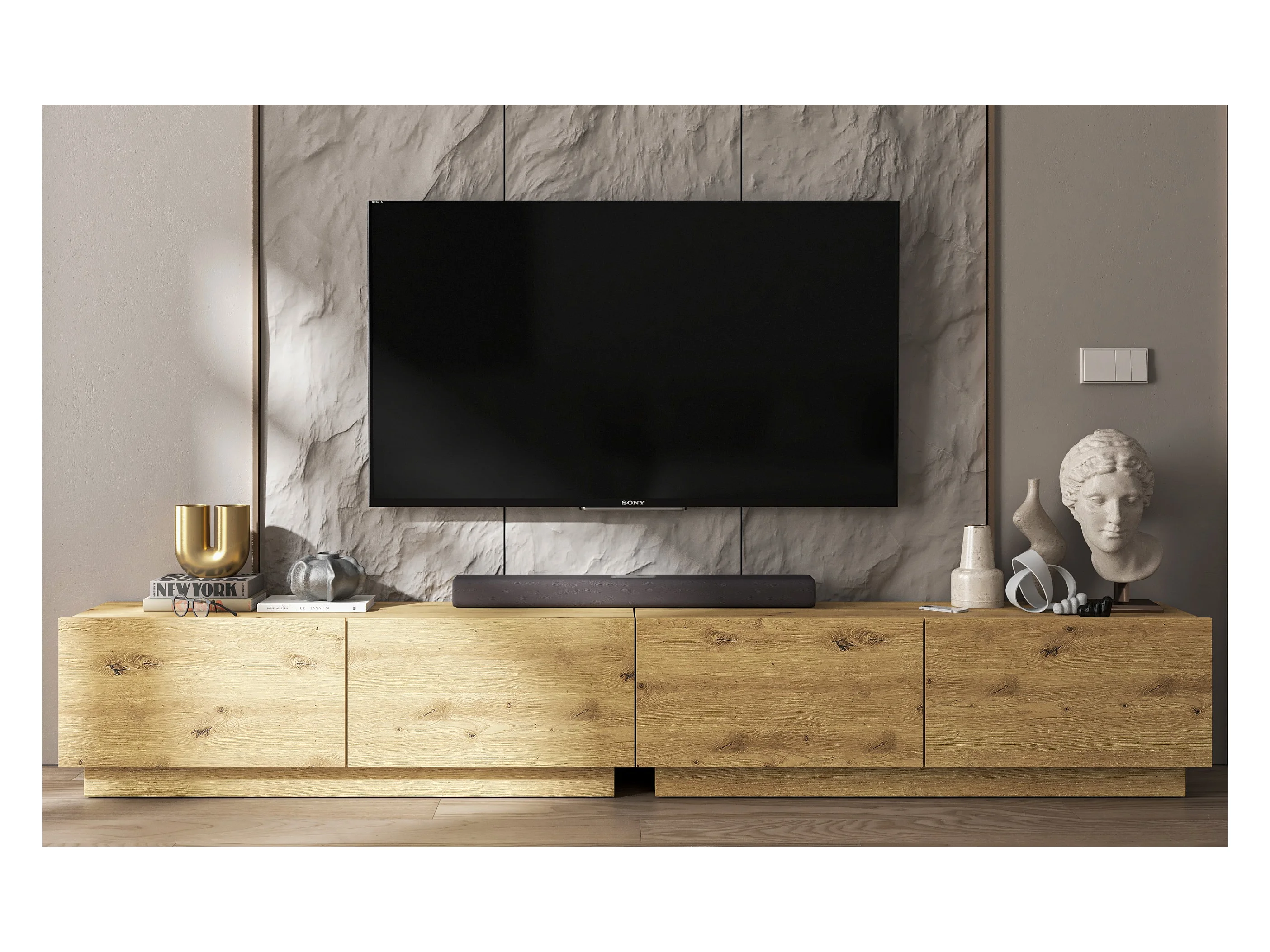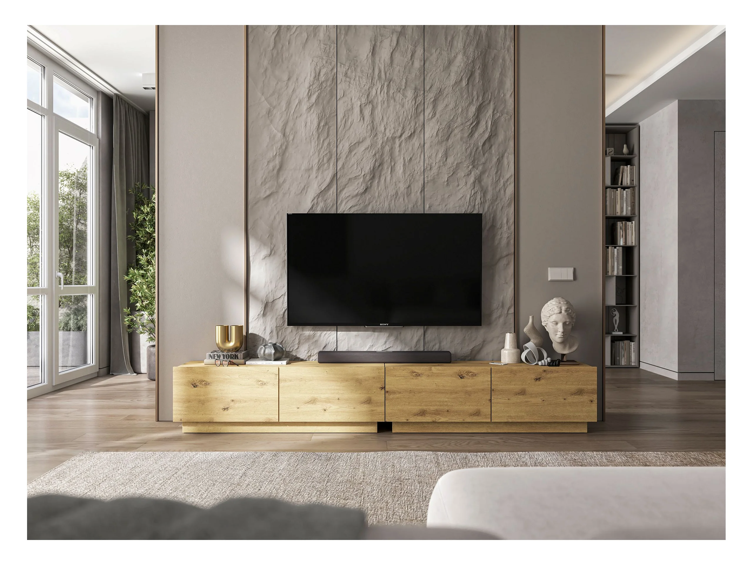 Meuble TV avec 4 portes - corps Artisan Chêne mat, façades Artisan Chêne mat - 240 cm, sur socle