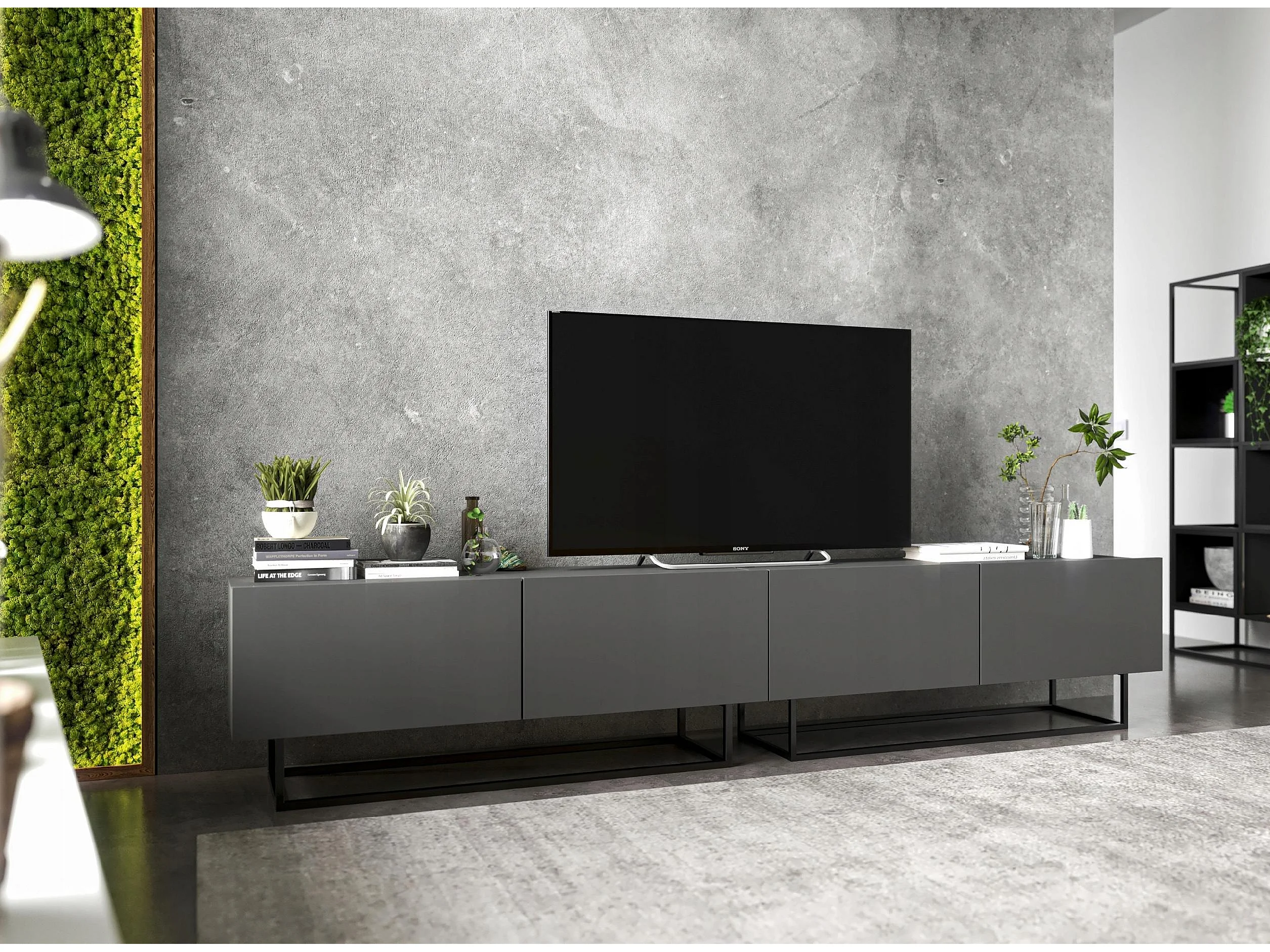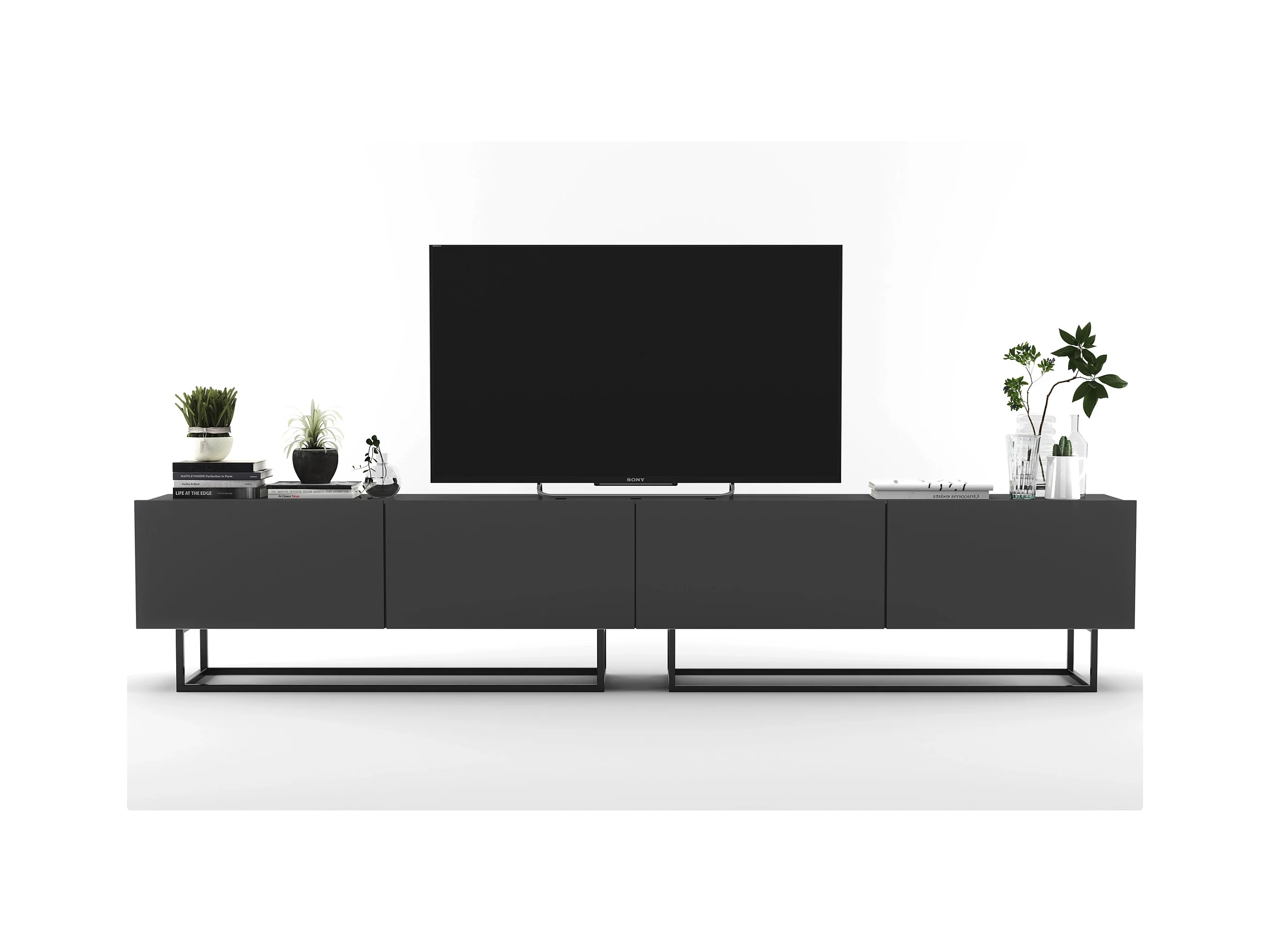 Meuble TV avec 4 portes - corps Graphite mat, façades Graphite mat - 240 cm, Cadre en métal noir