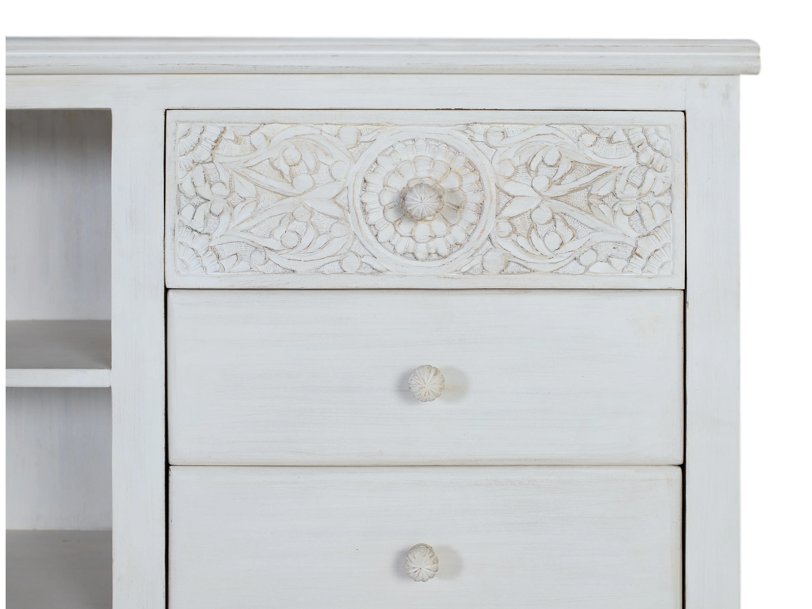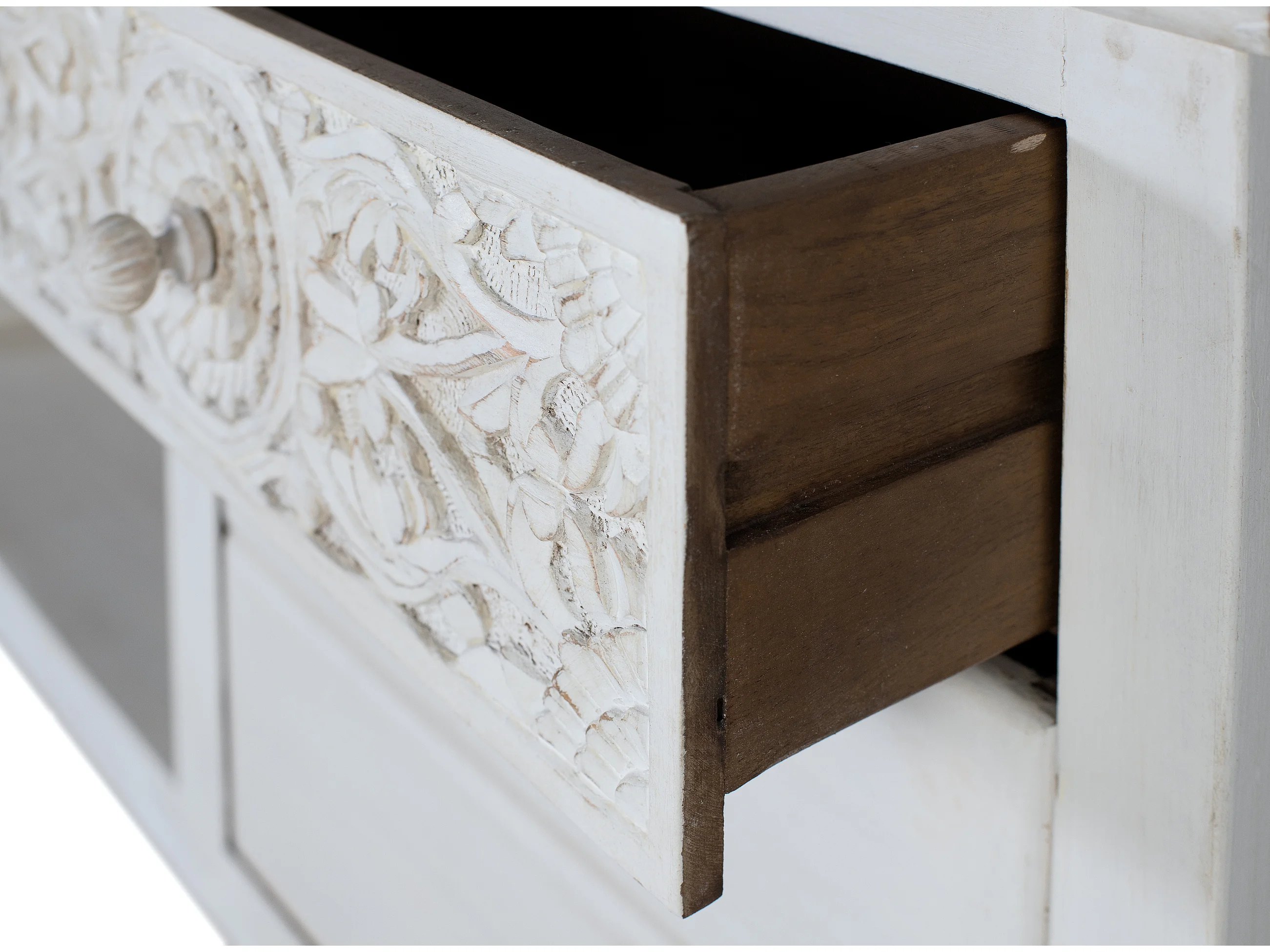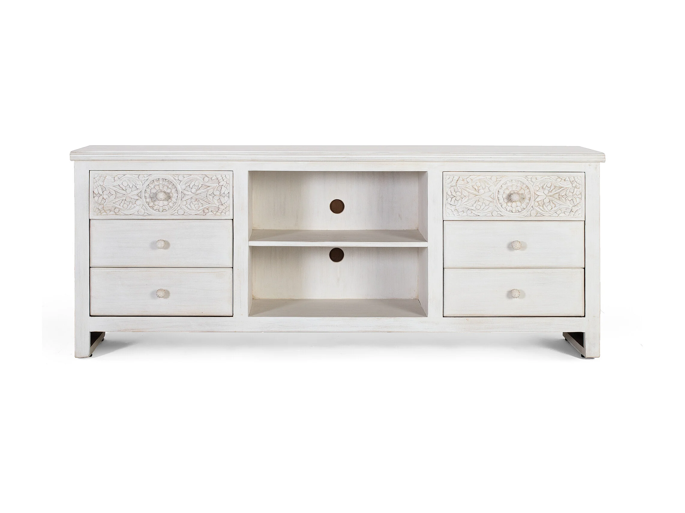 Meuble TV avec 6 tiroirs et 2 espaces en bois naturel