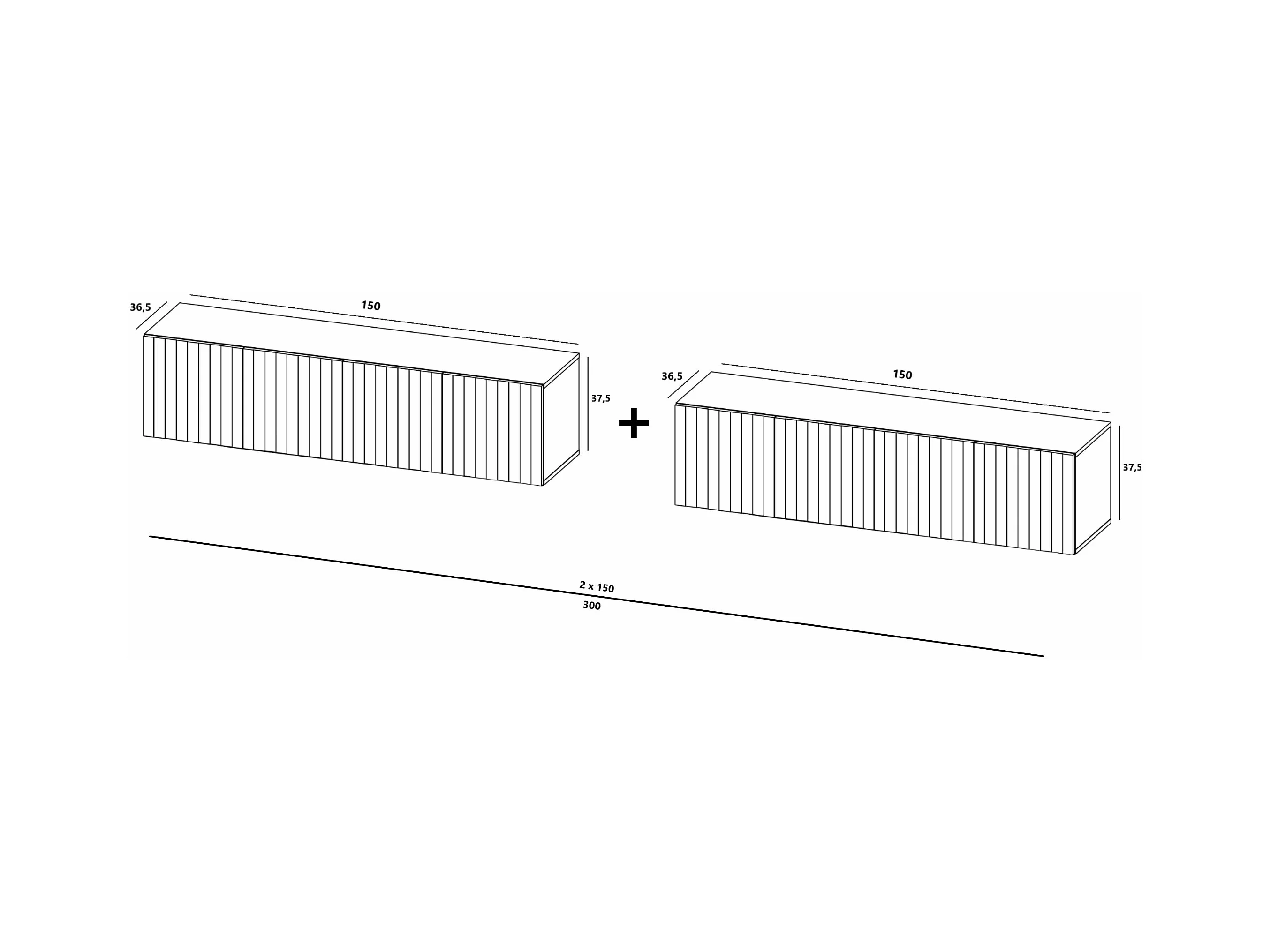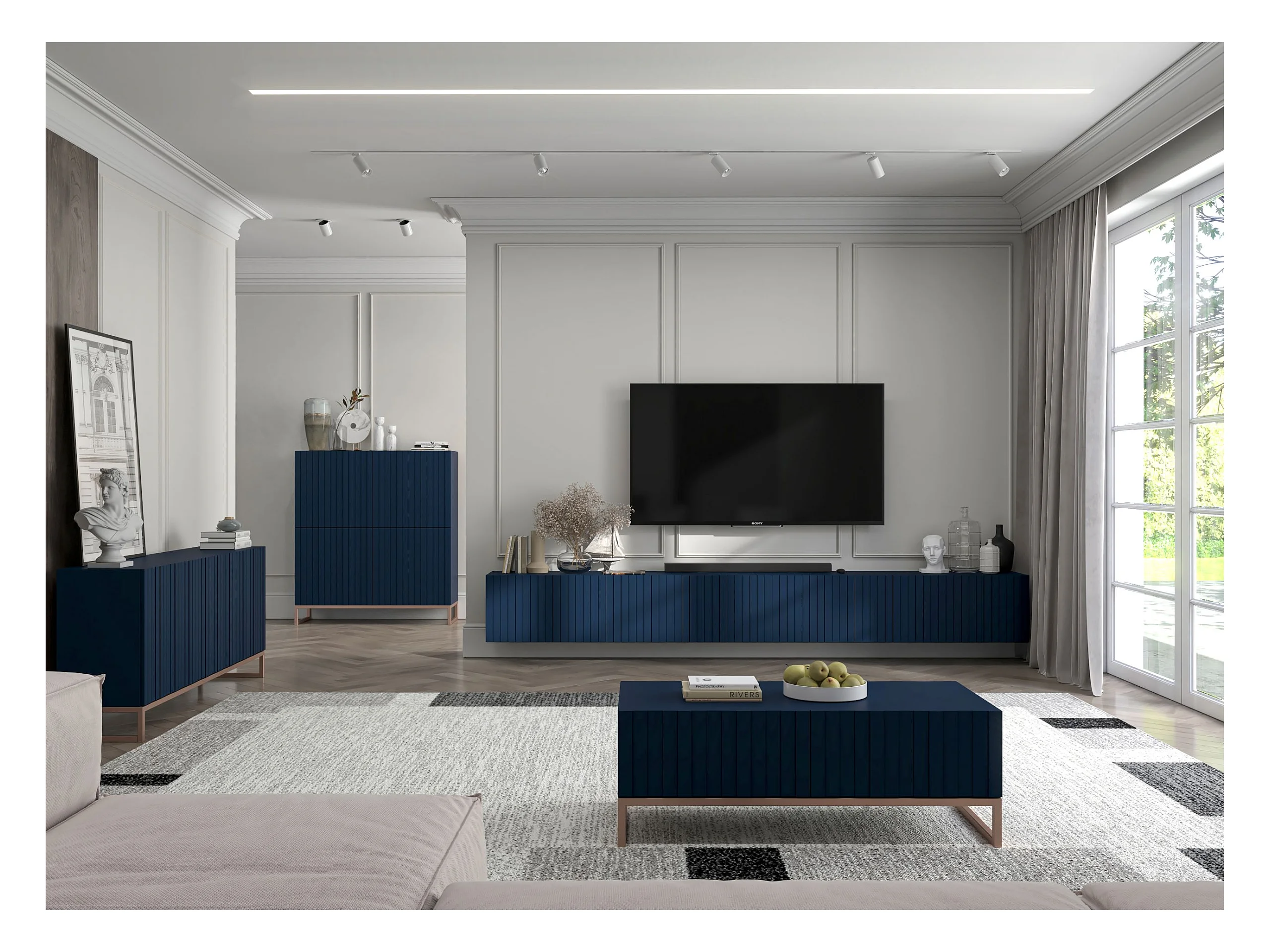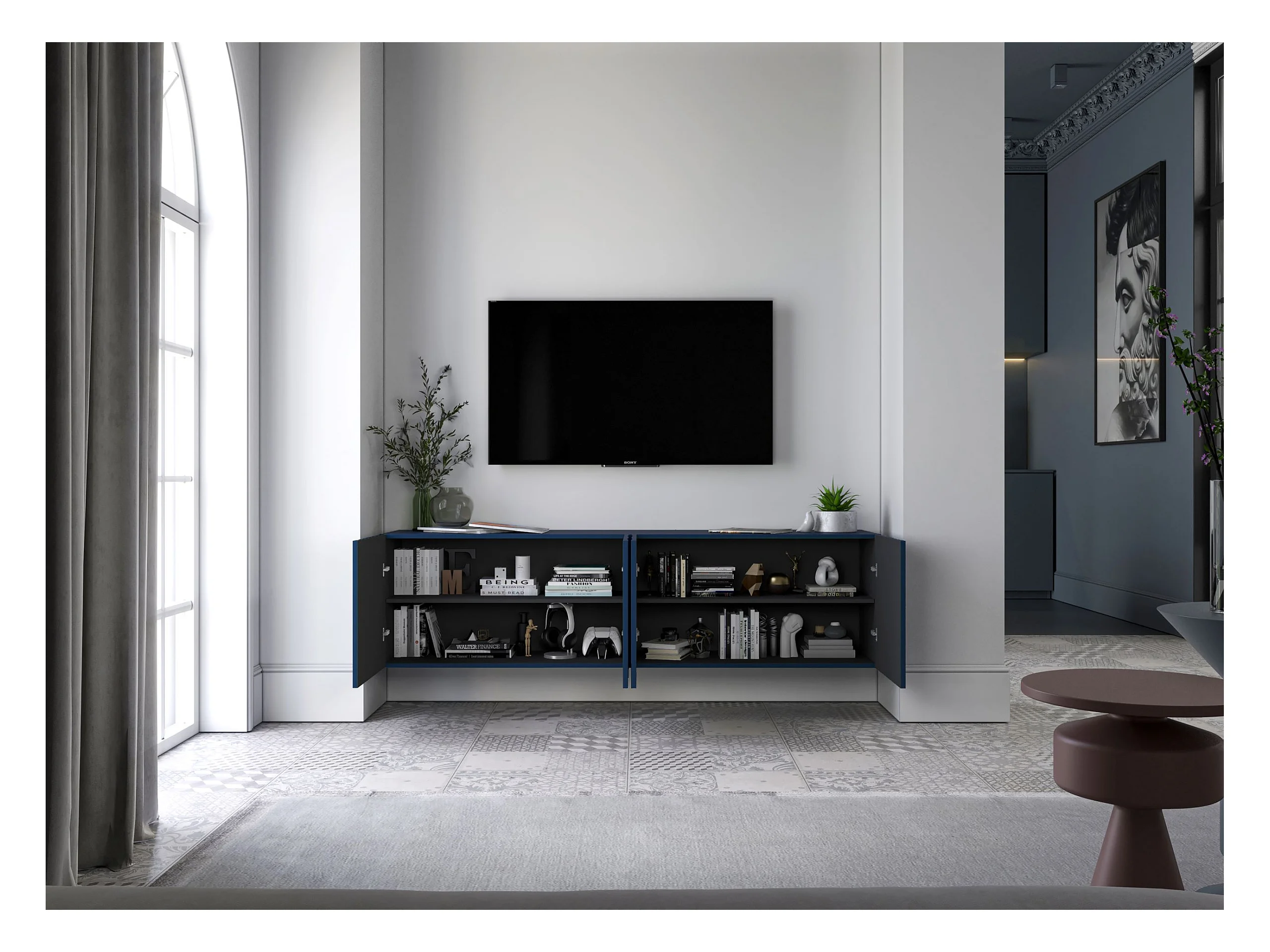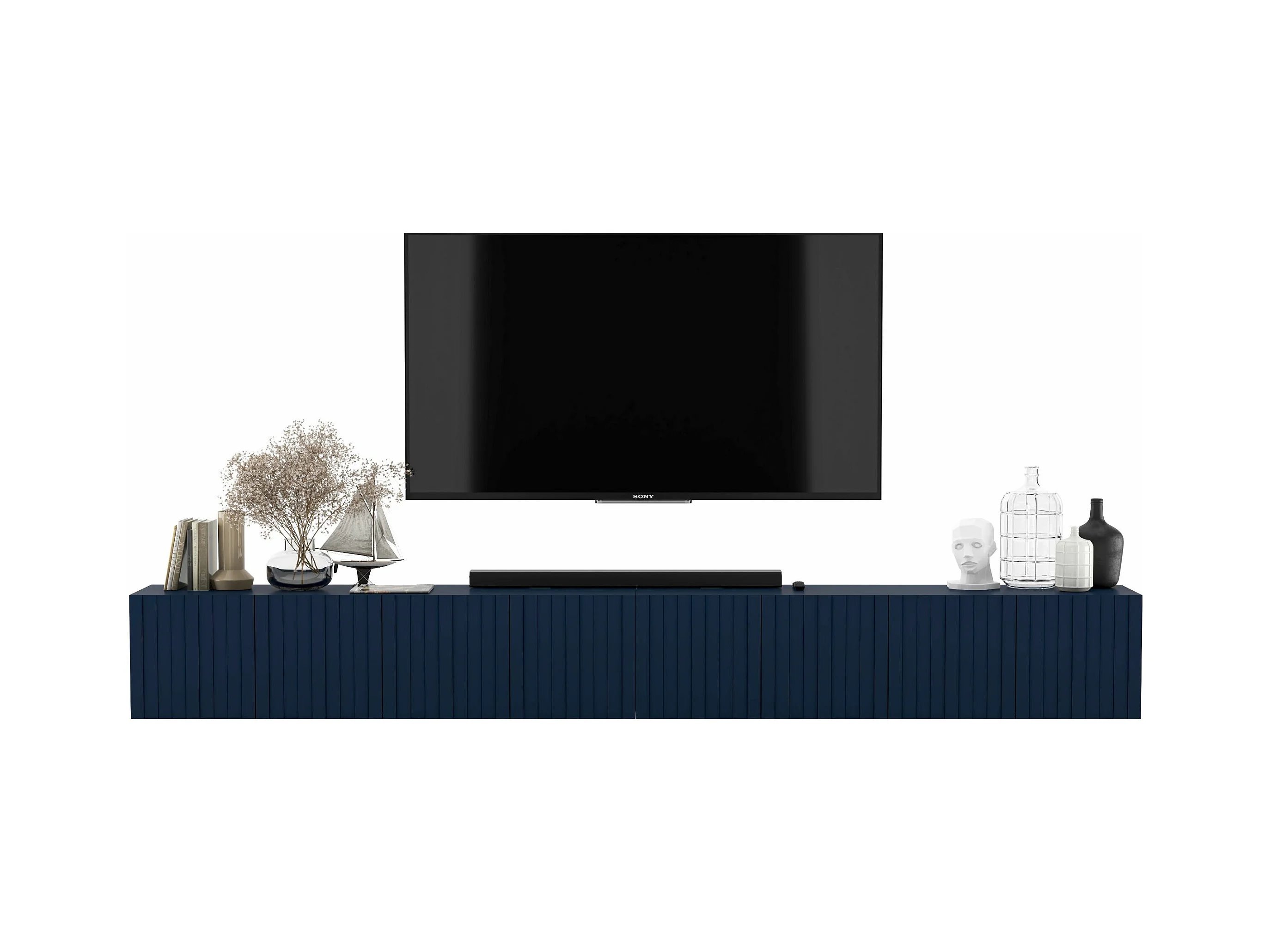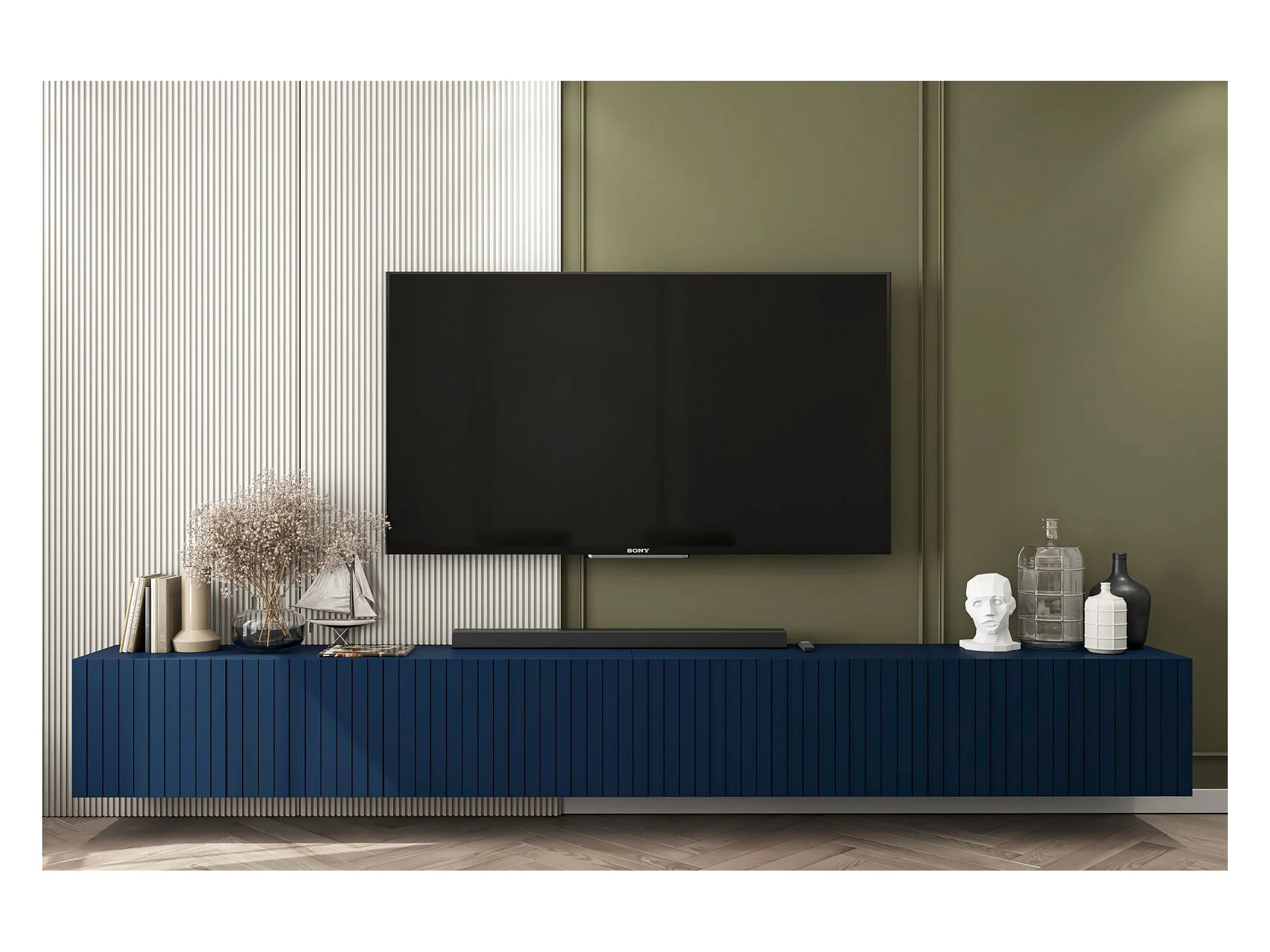 Meuble TV avec 8 portes - Corps Bleu marine mat, façades rainurées Bleu marine mat - 300 cm