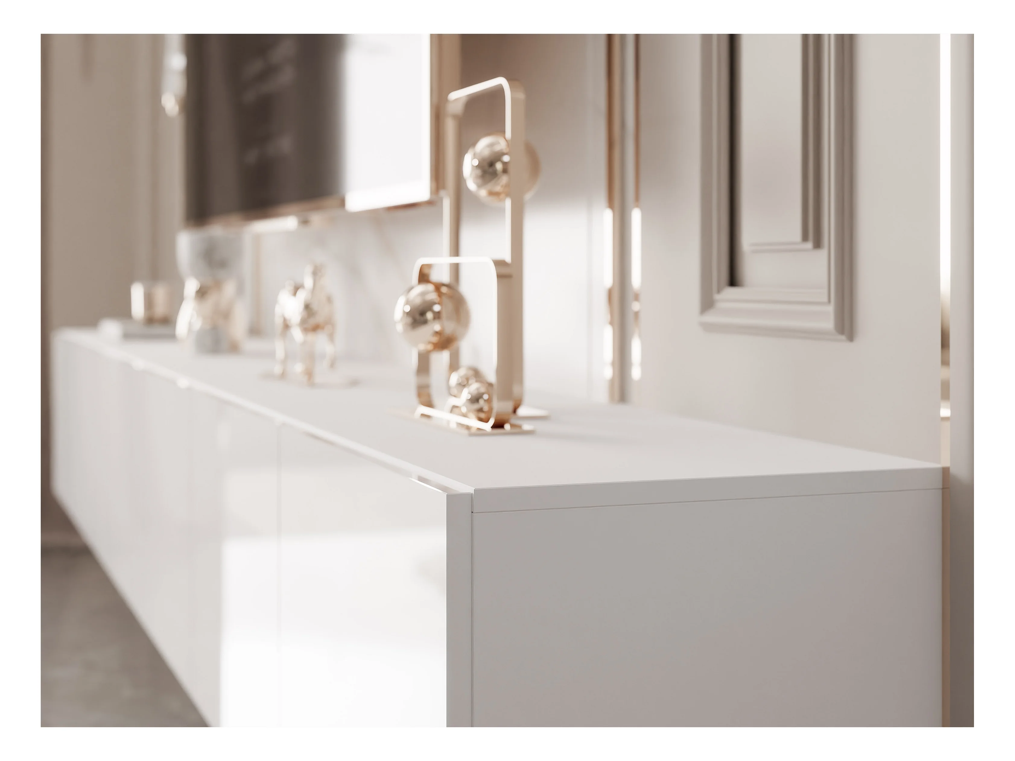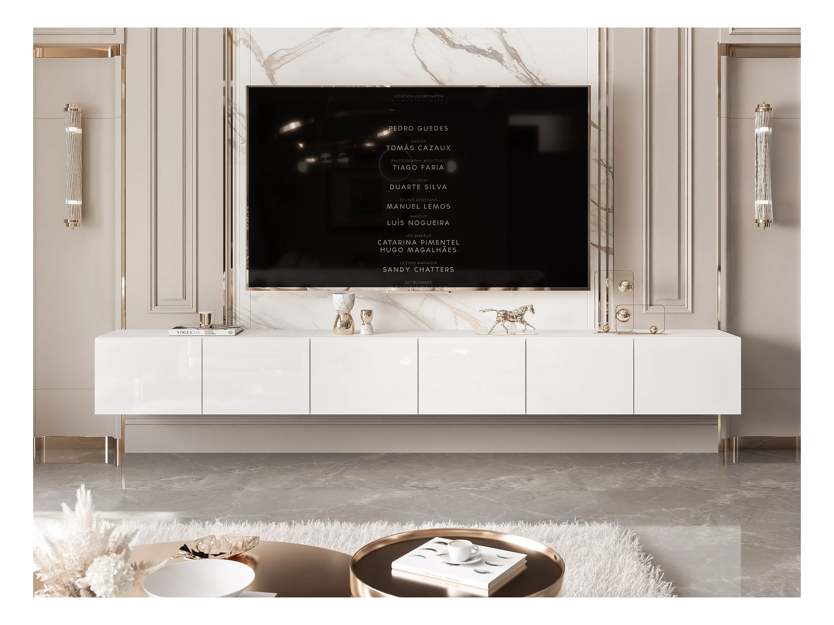 Meuble TV avec LED ANGEL 300 cm blanc brillant