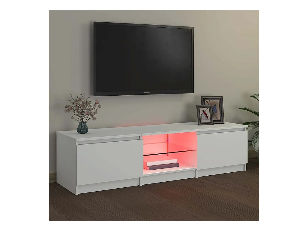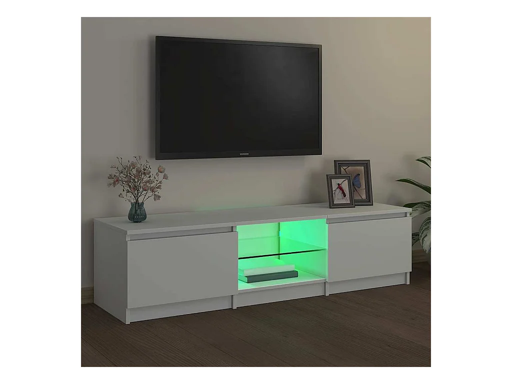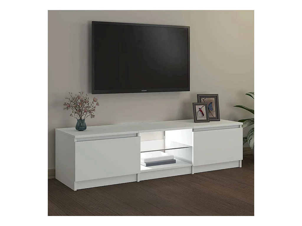 Meuble TV 140cm blanc à LED DARYL - HAPPY GARDEN