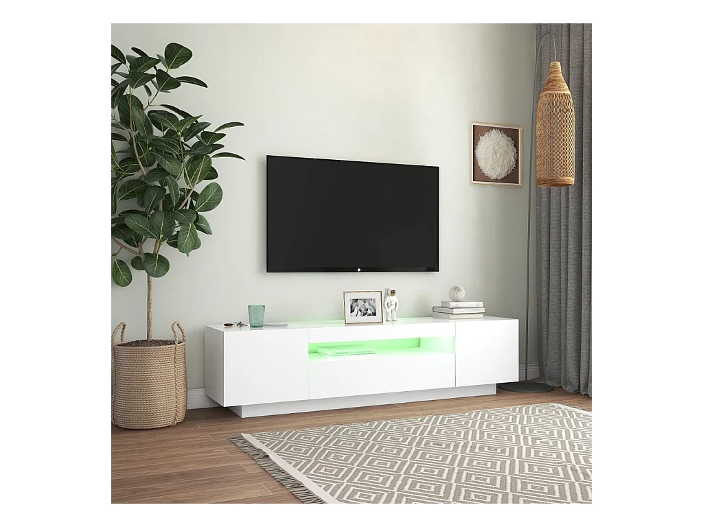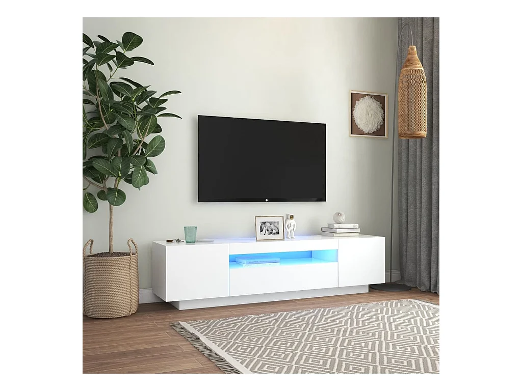 Meuble TV avec lumières LED Blanc 200x35x40 cm BE42613