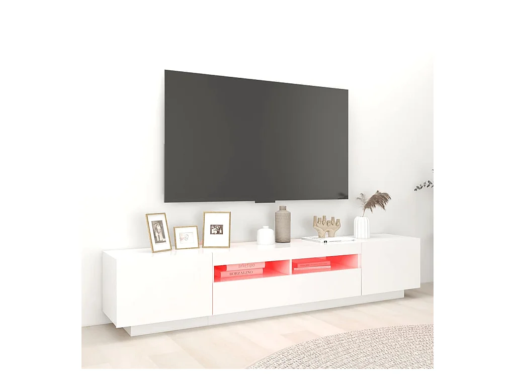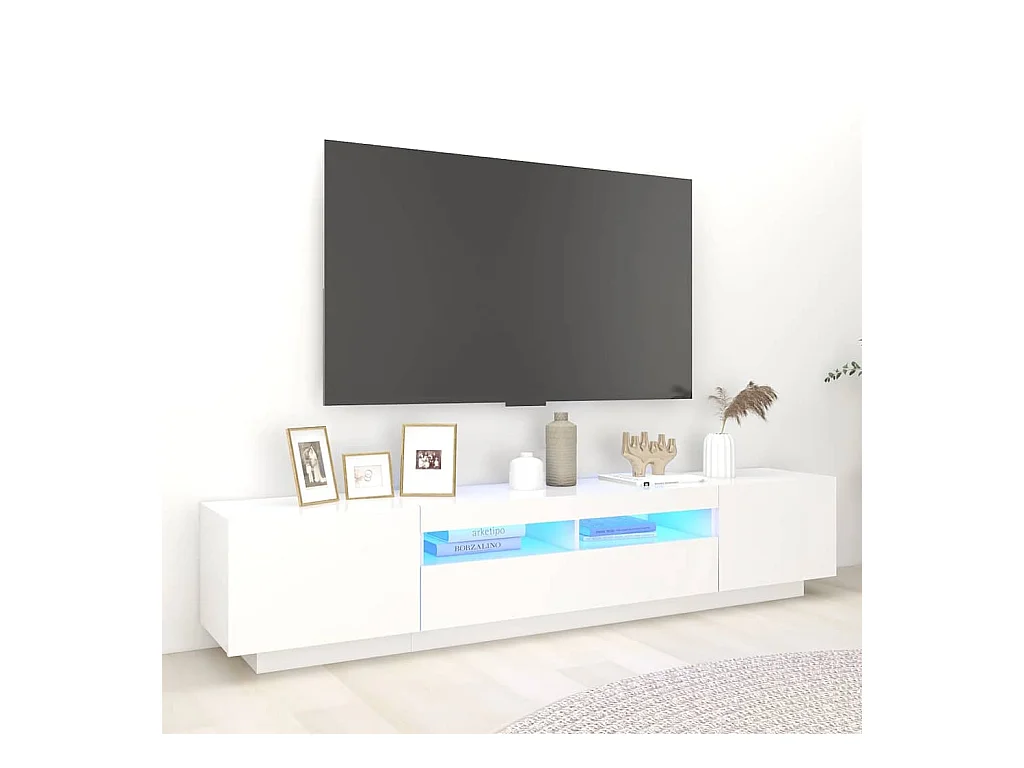 Meuble TV avec lumières LED Blanc 200x35x40 cm