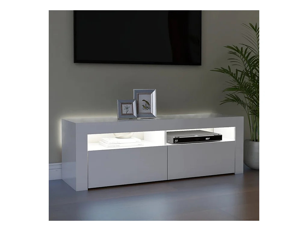 Meuble TV avec lumières LED blanc brillant 120x35x40 cm FR25339