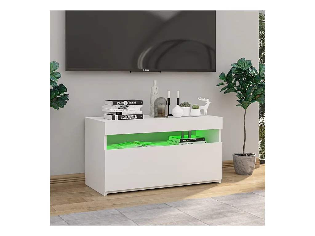 Meuble TV avec lumières LED Blanc 75x35x40 cm