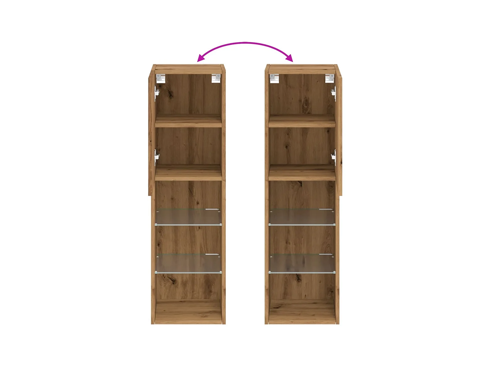 Meubles TV avec lumières LED 2pièces chêne artisanal 30,5x30x102cm