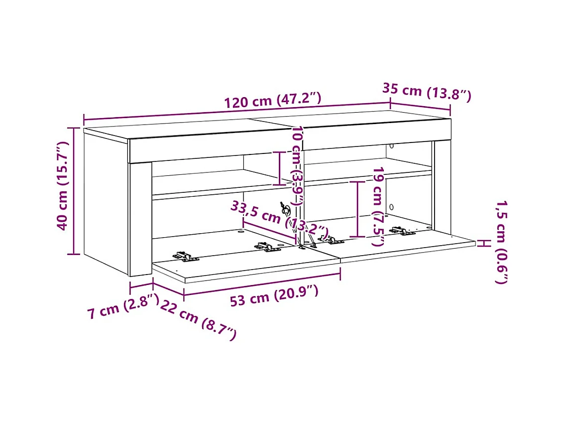 Meuble TV avec lumières LED chêne artisanal bois d'ingénierie