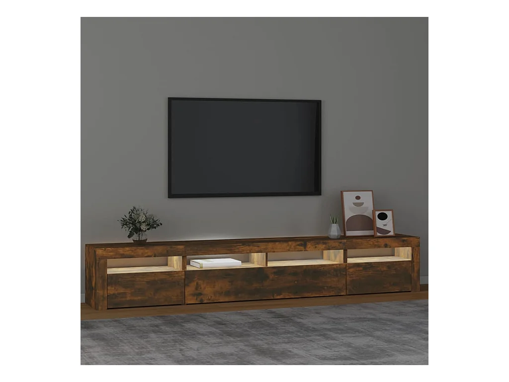 Meuble TV avec lumières LED Chêne fumé 240x35x40 cm