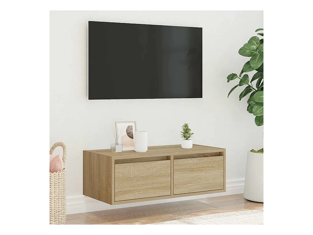 Meuble TV avec lumières LED chêne sonoma 100X35,5x25 cm
