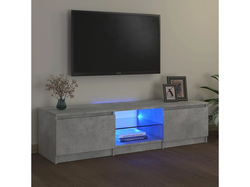Meuble TV avec lumières LED gris béton 140x40x35,5 cm