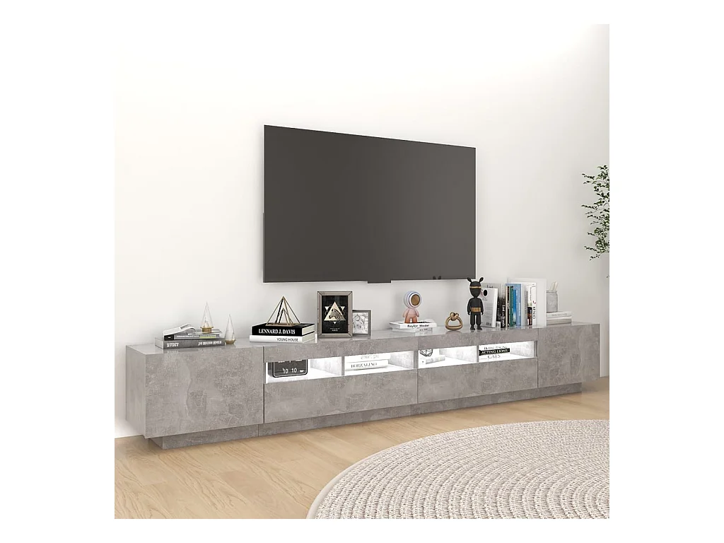Meuble TV avec lumières LED Gris béton 260x35x40 cm