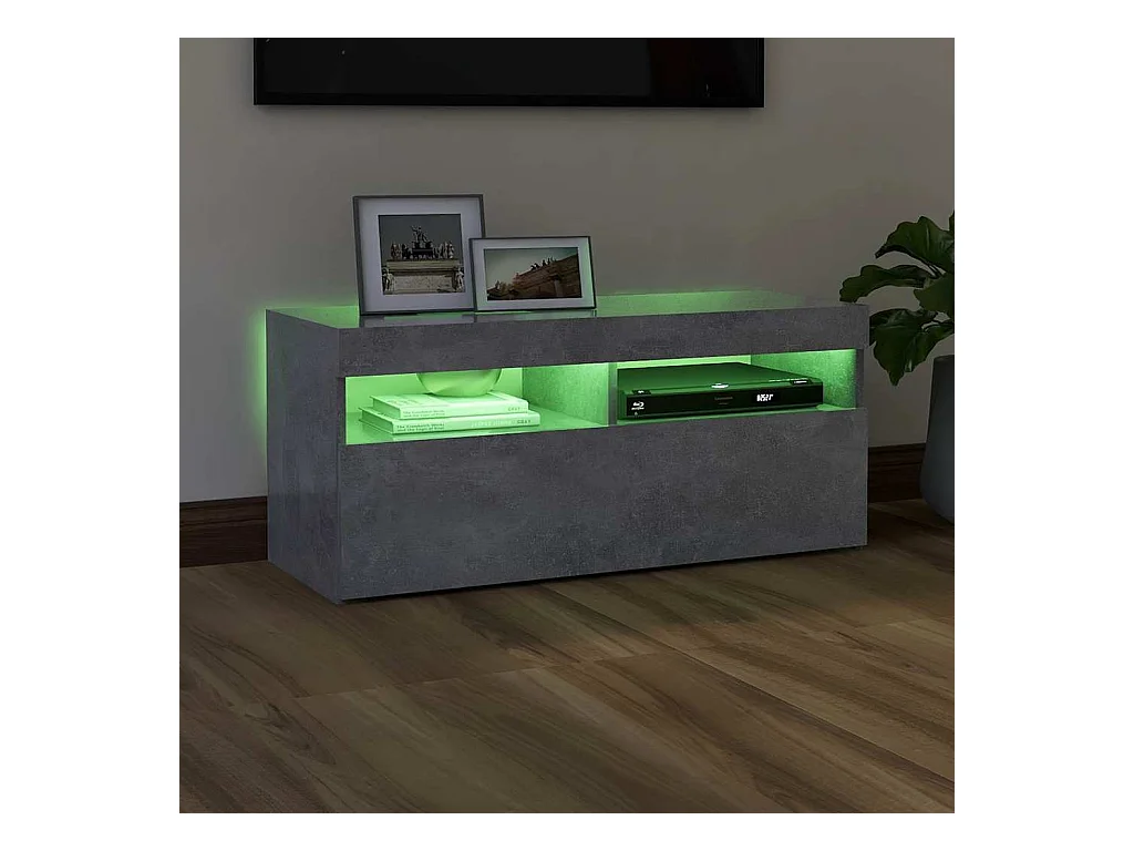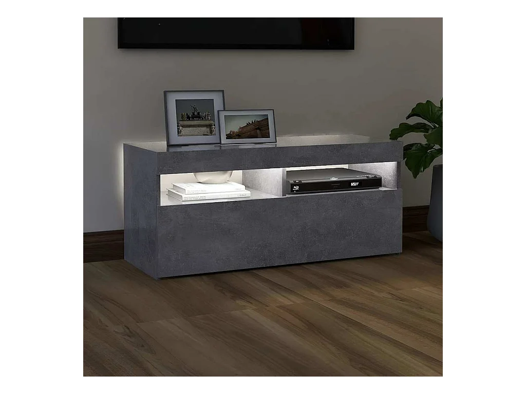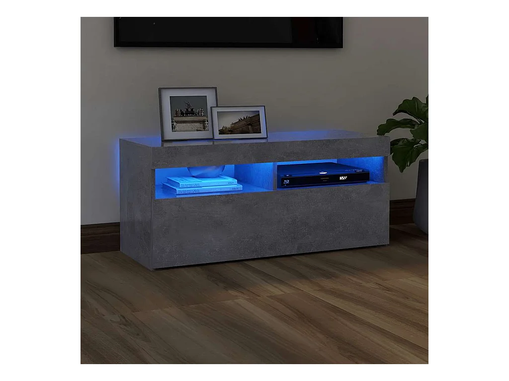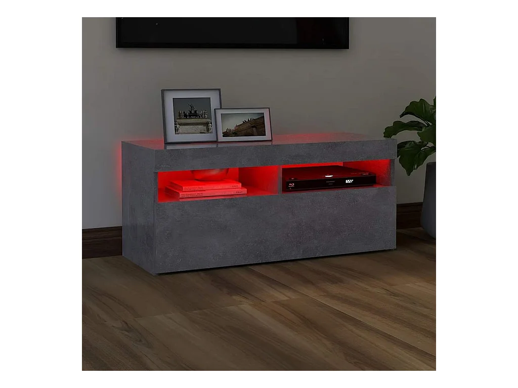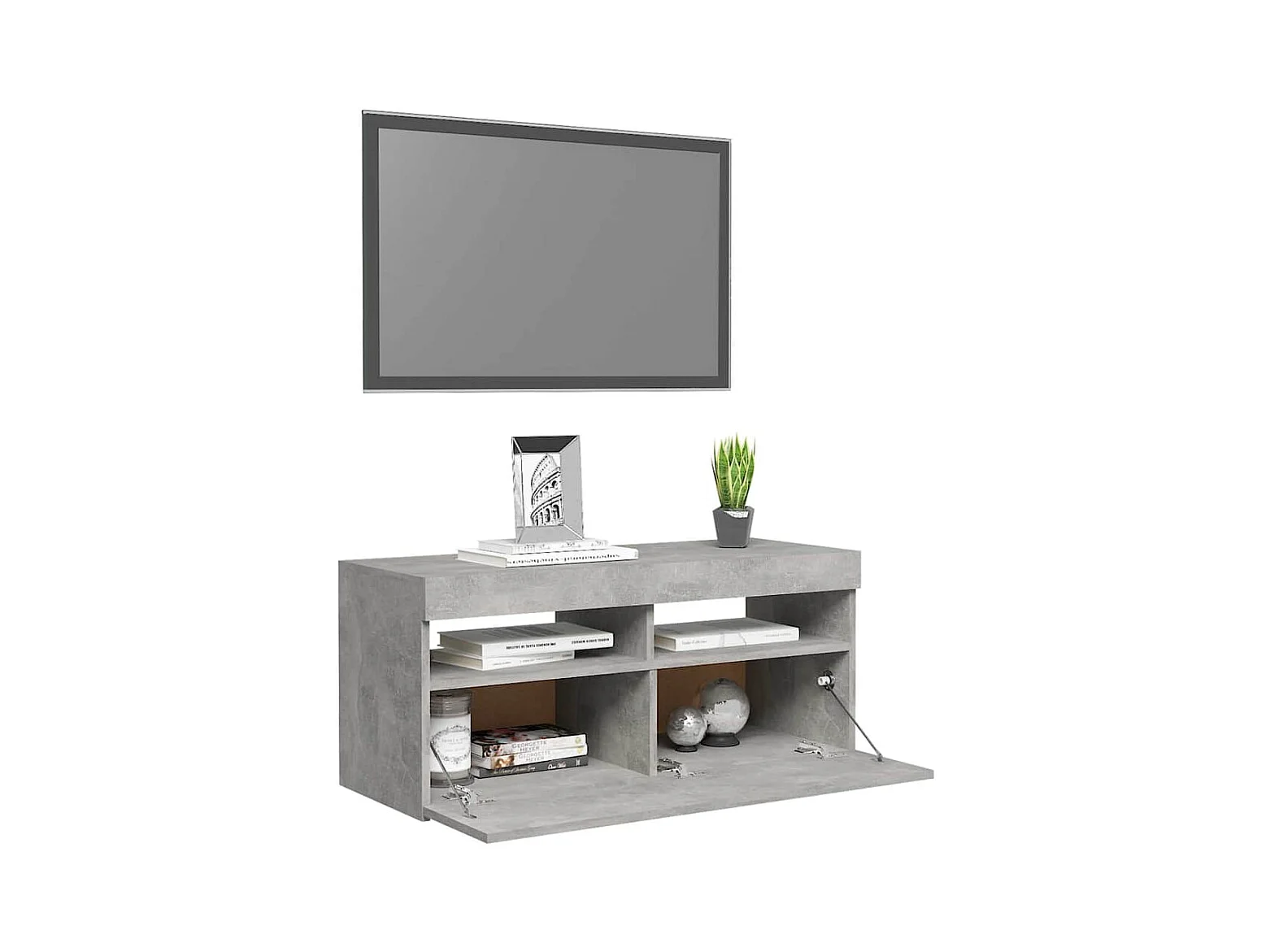 Meuble TV avec lumières LED gris béton 90x35x40 cm