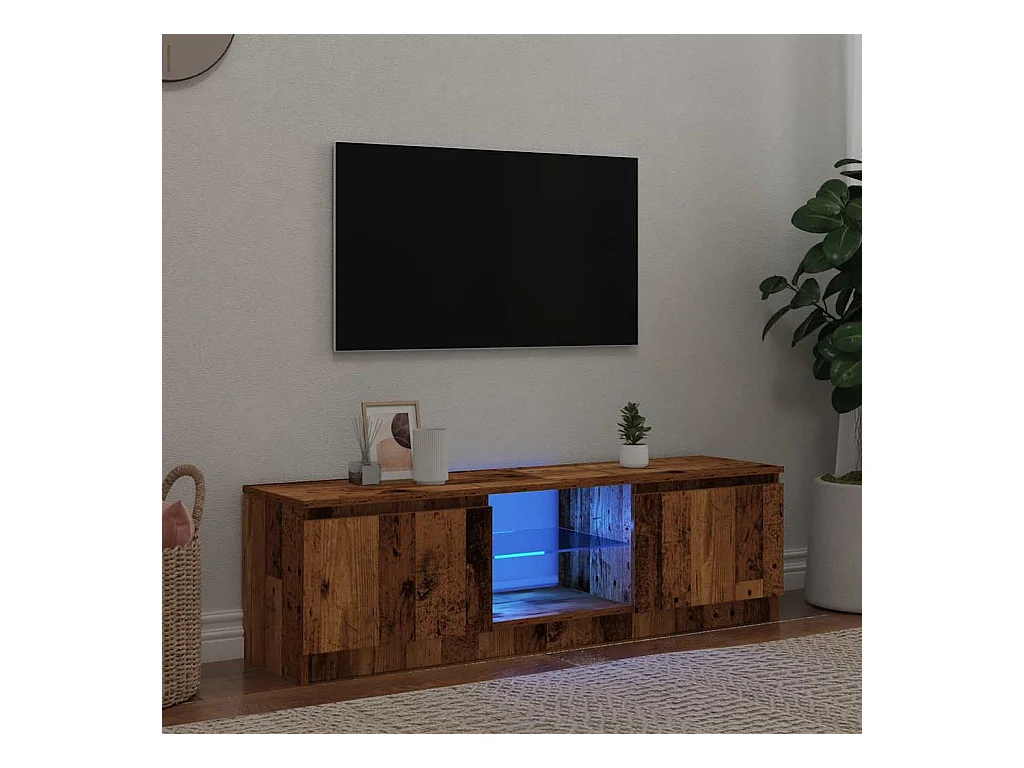 Meuble TV avec lumières LED vieux bois bois d'ingénierie
