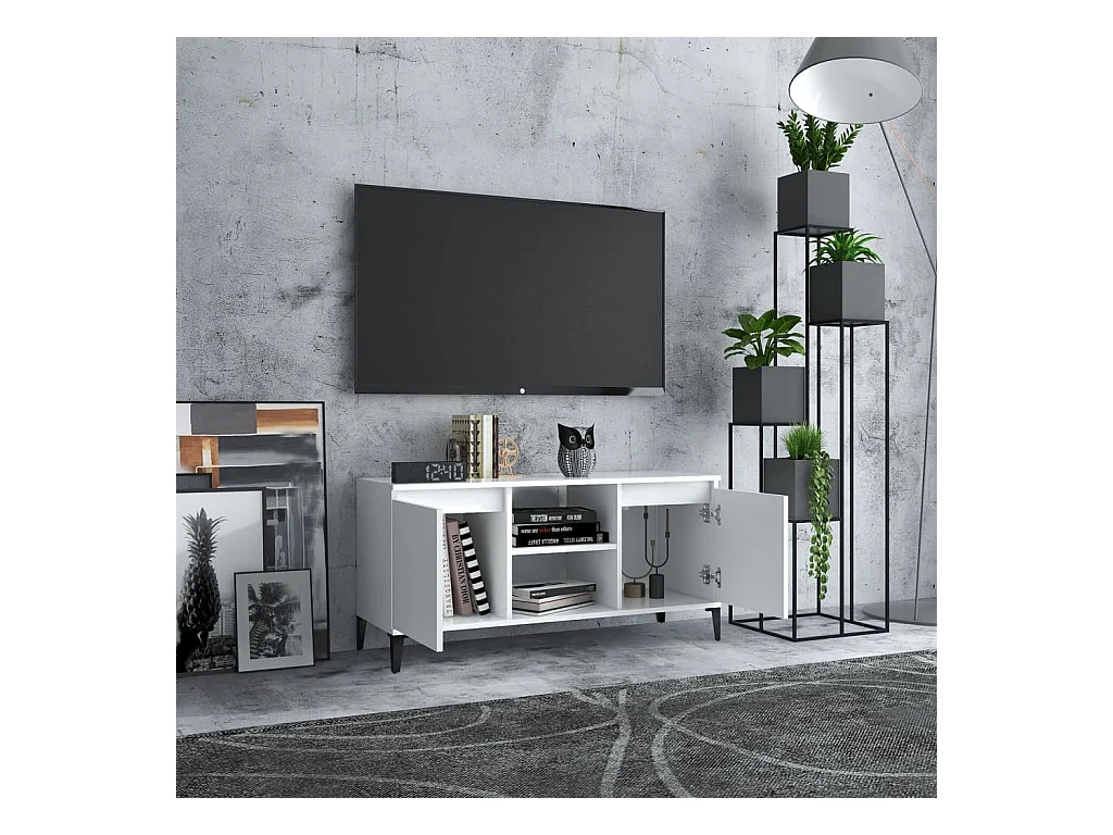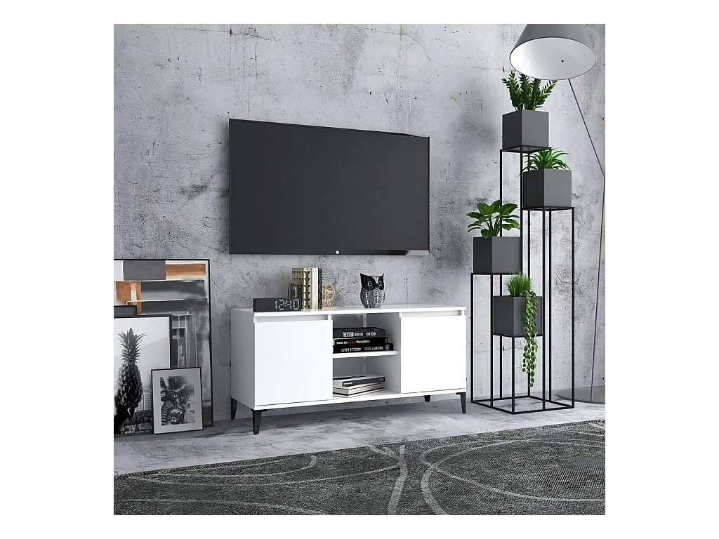 Meuble TV avec pieds en métal Blanc 103,5x35x50 cm