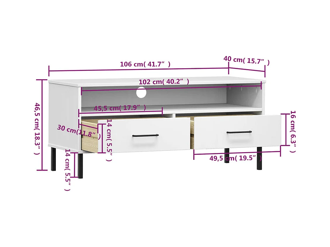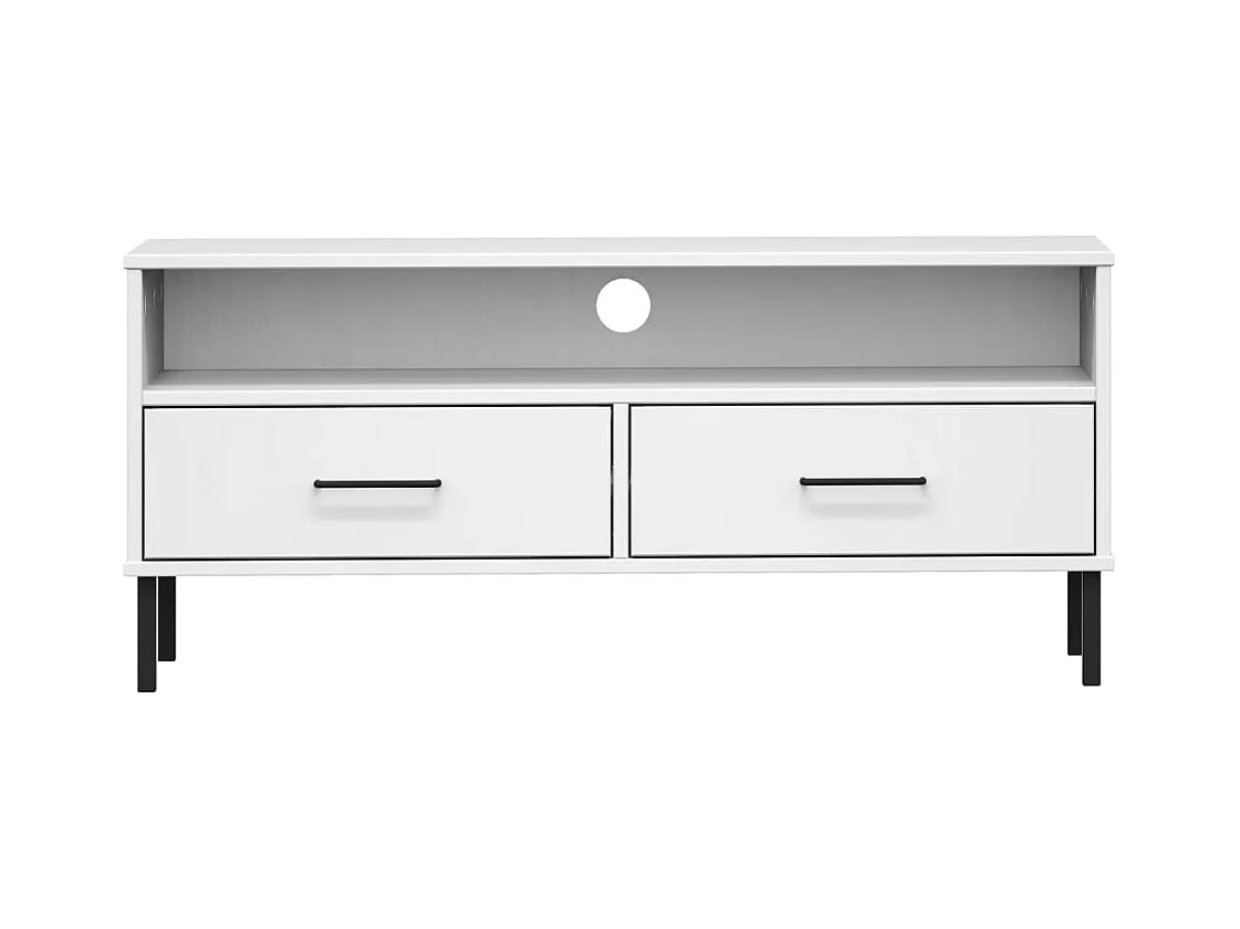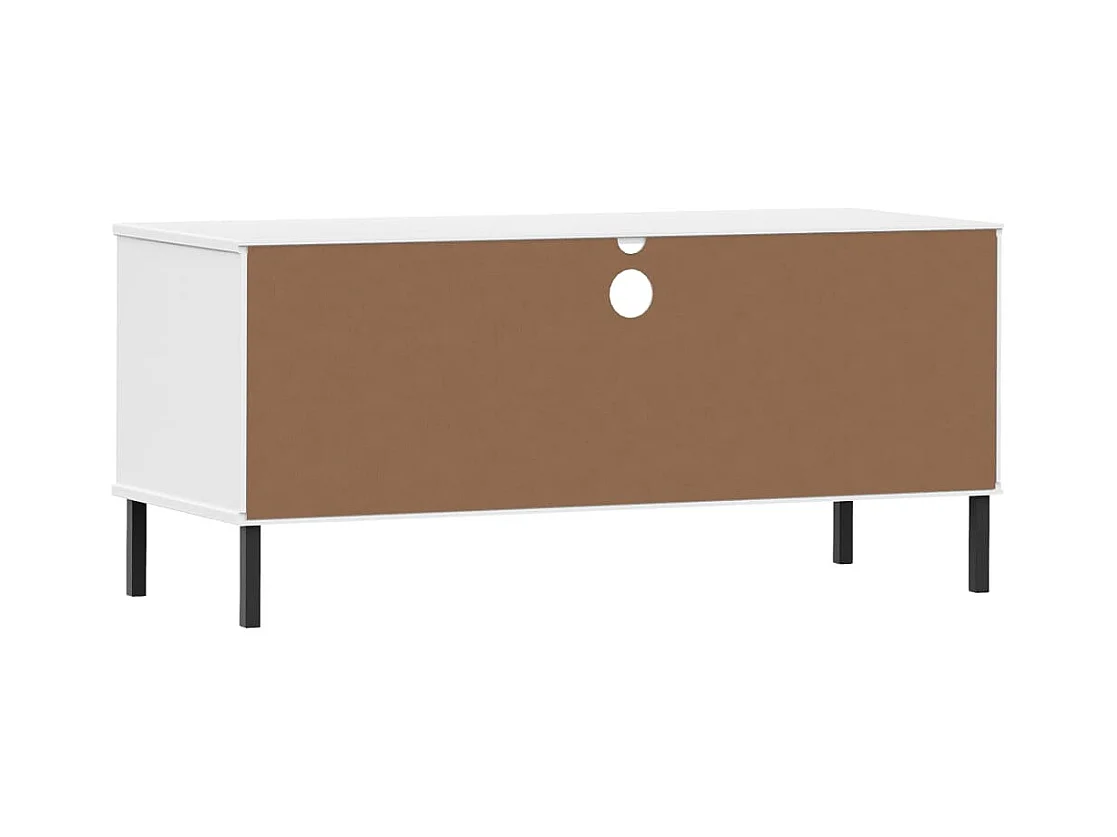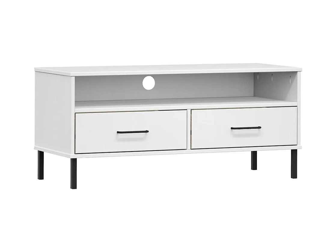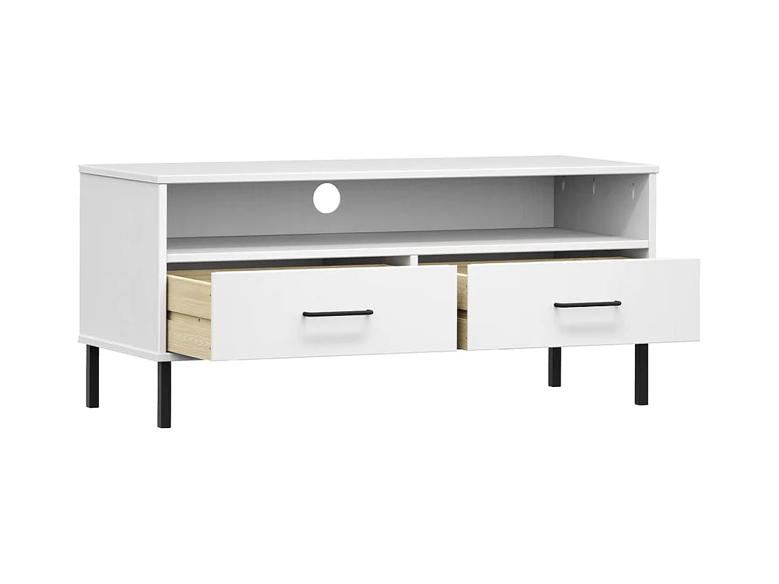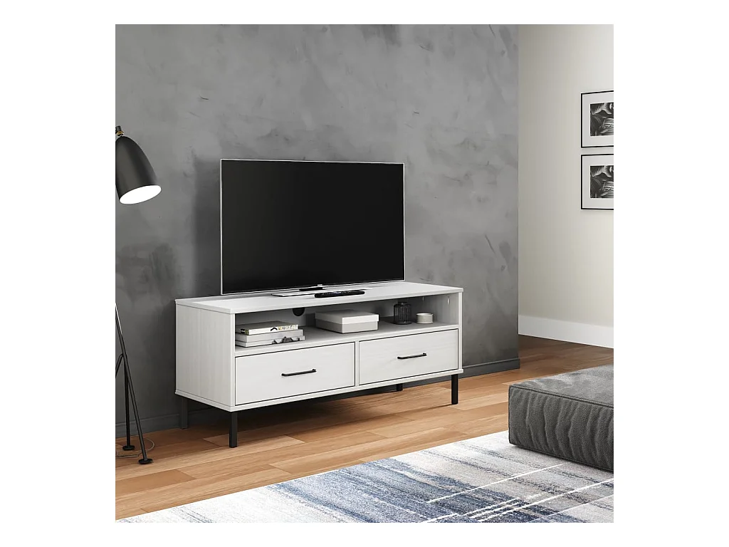 Meuble TV avec pieds en métal Blanc Bois de pin massif OSLO
