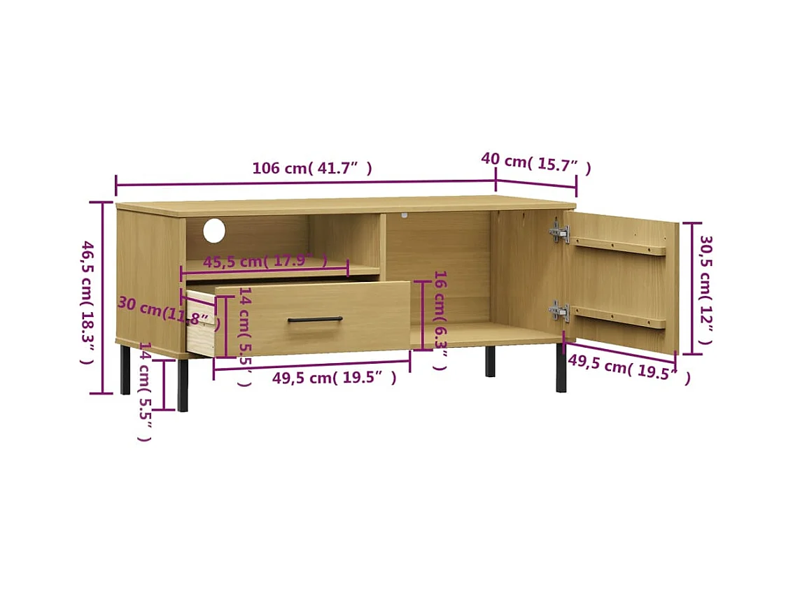 Meuble TV avec pieds en métal Marron Bois de pin massif OSLO