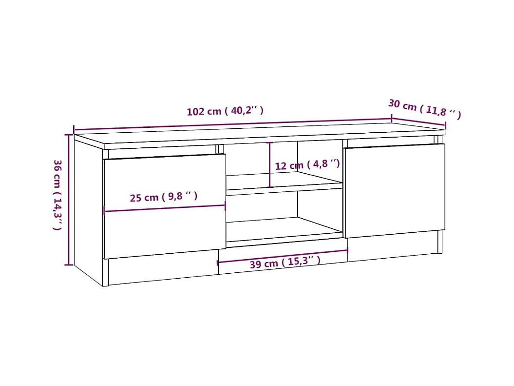 Meuble TV chêne sonoma 102x35x45 cm bois d'ingénierie