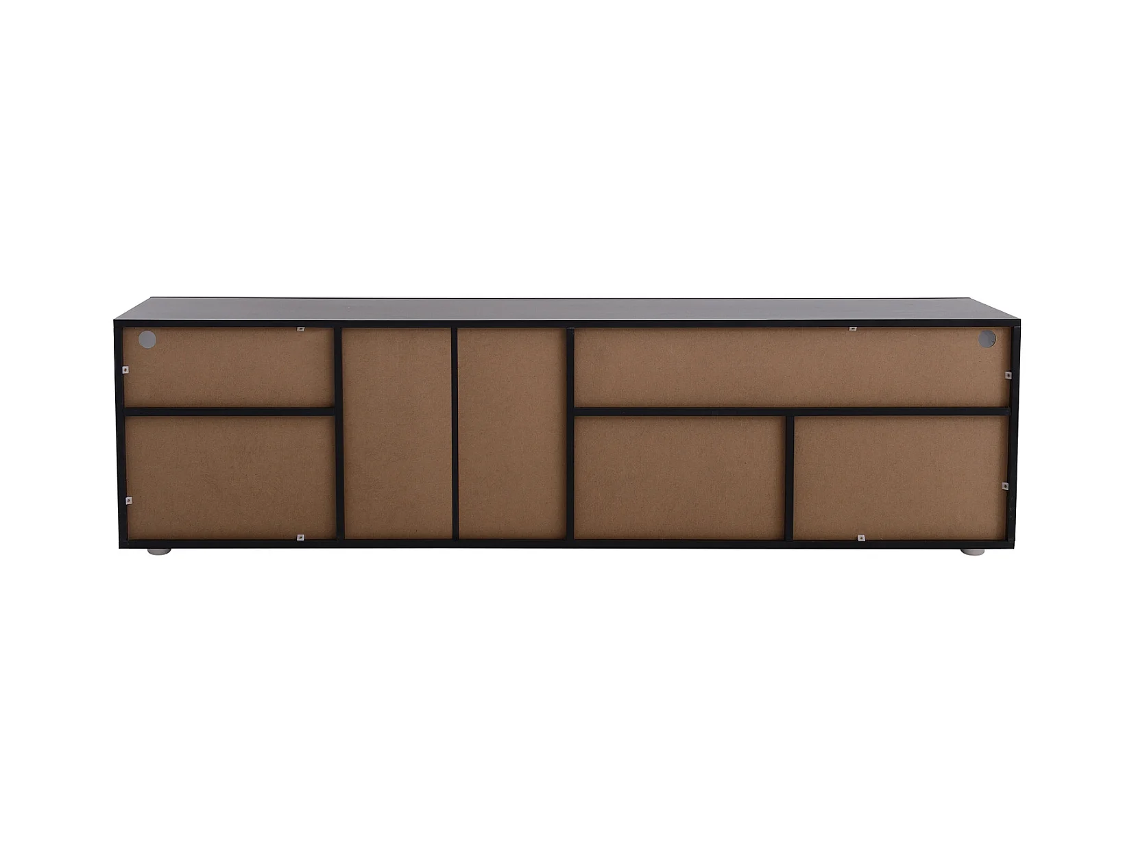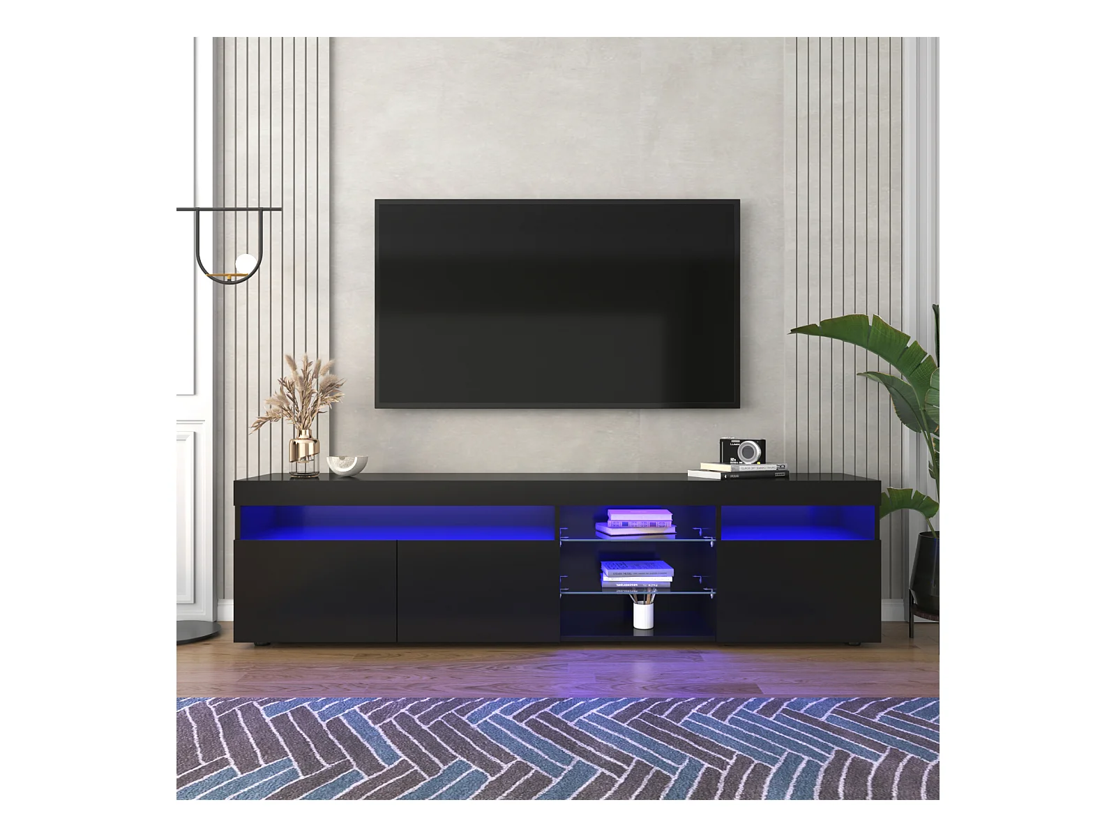 Meuble TV avec Rangement , 3 Portes et 2 étagères en Verre , Meuble TV avec LED Variable , noir