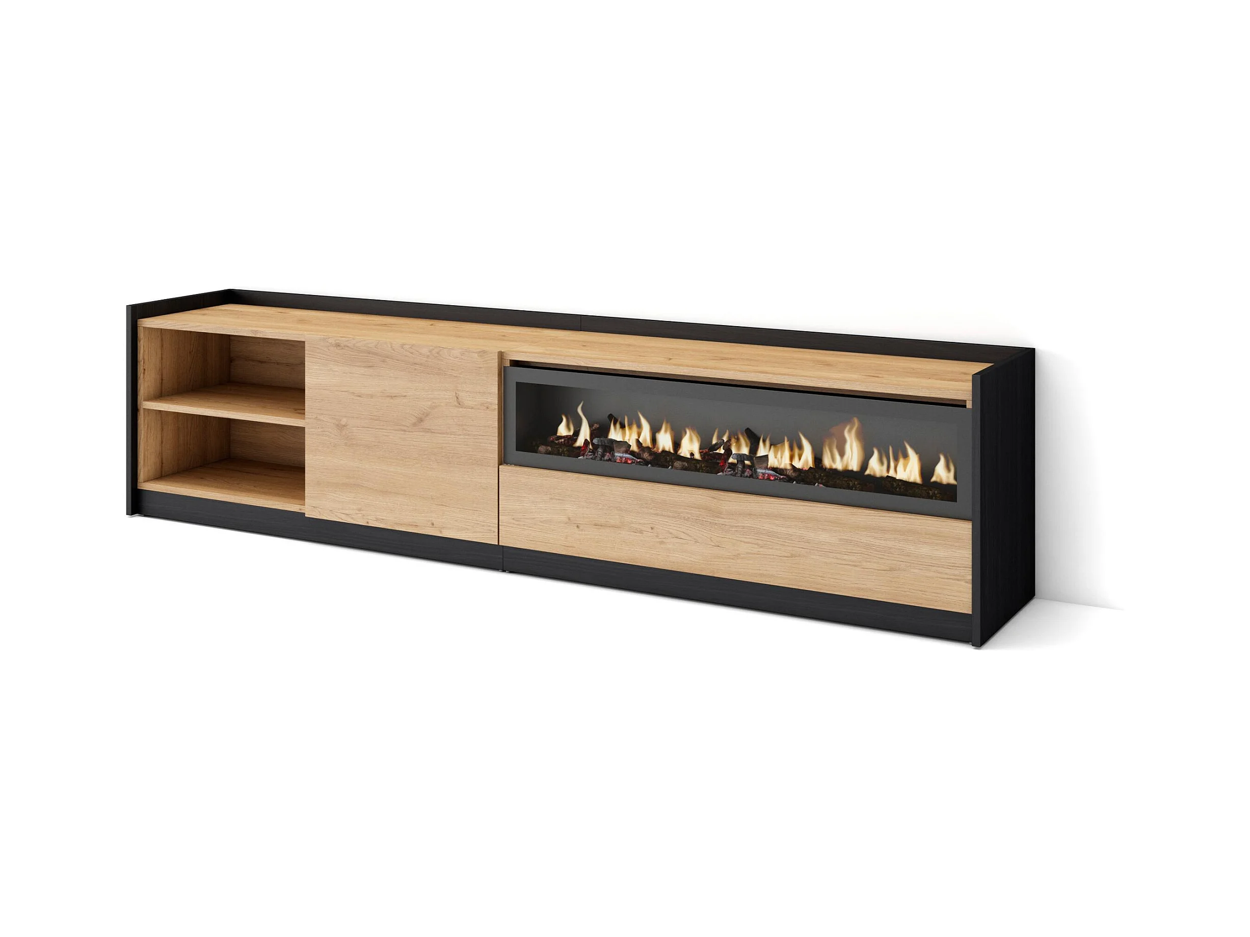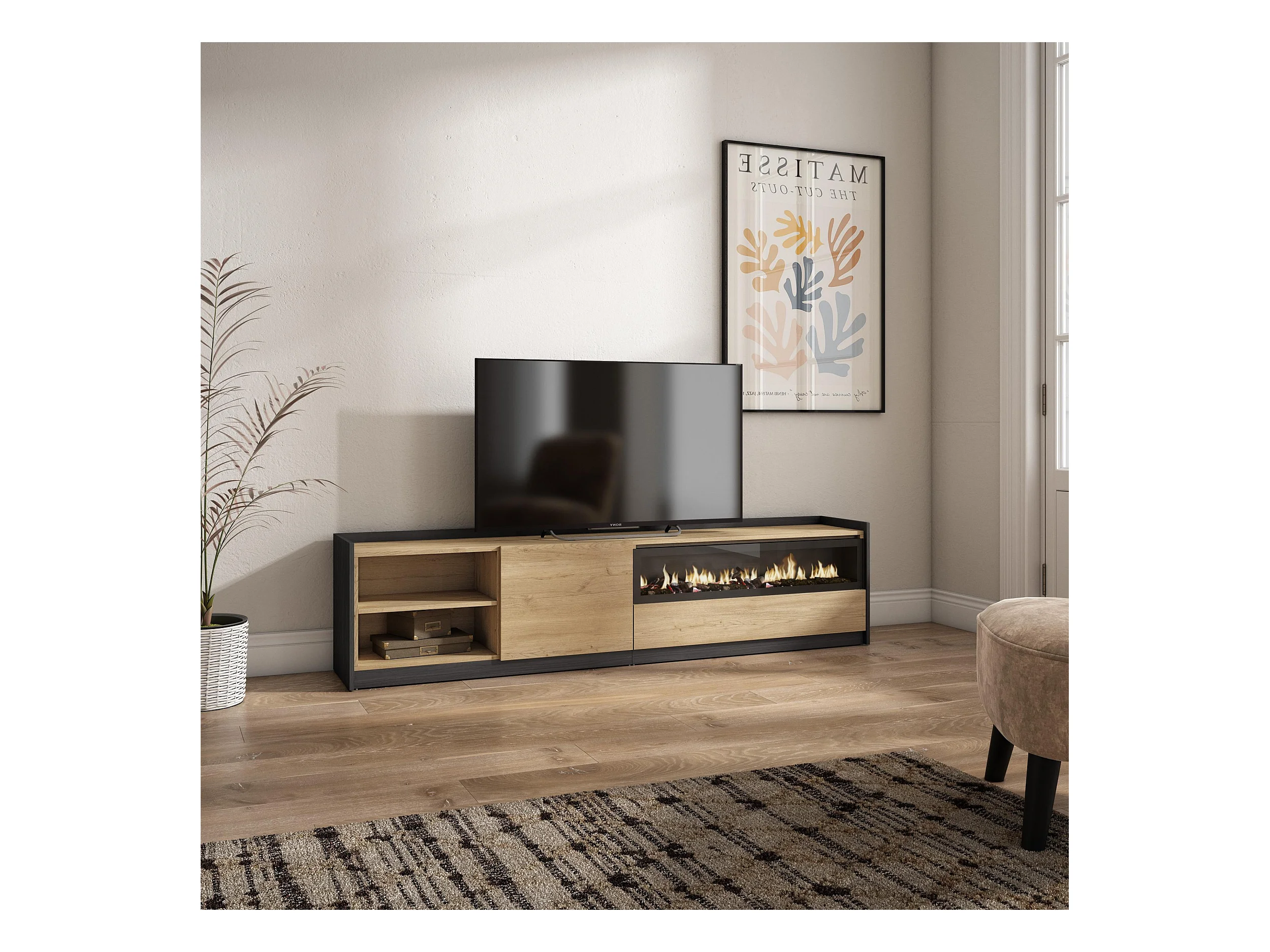 Meuble TV | Banc Télé, 207x50x37 cm, Pour les TV jusqu'à 80", Cheminée électrique, Chêne et noir