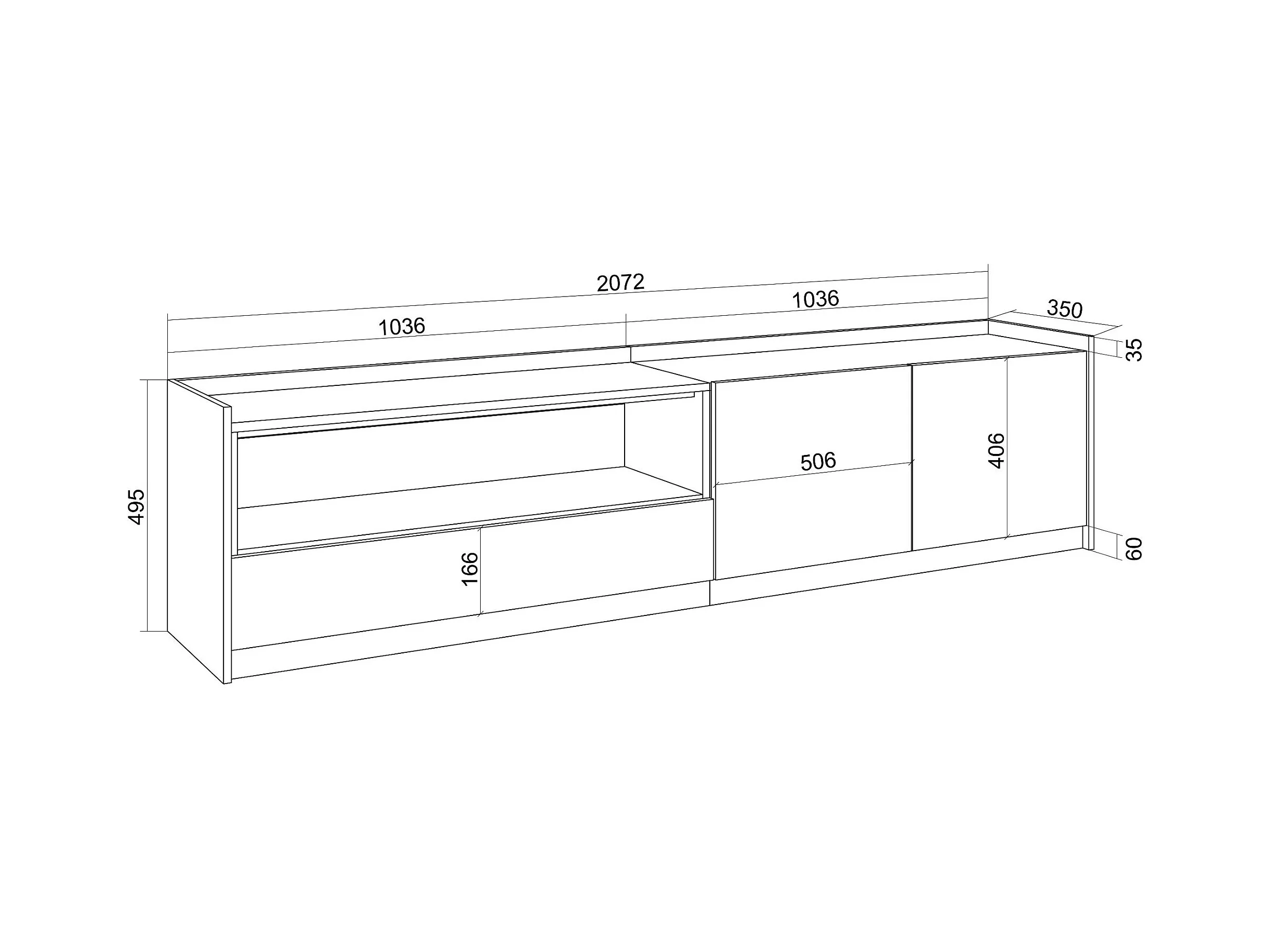 Meuble TV | Banc Télé, 207x50x37 cm, Pour les TV jusqu'à 80", Meubles de salon, Chêne et noir