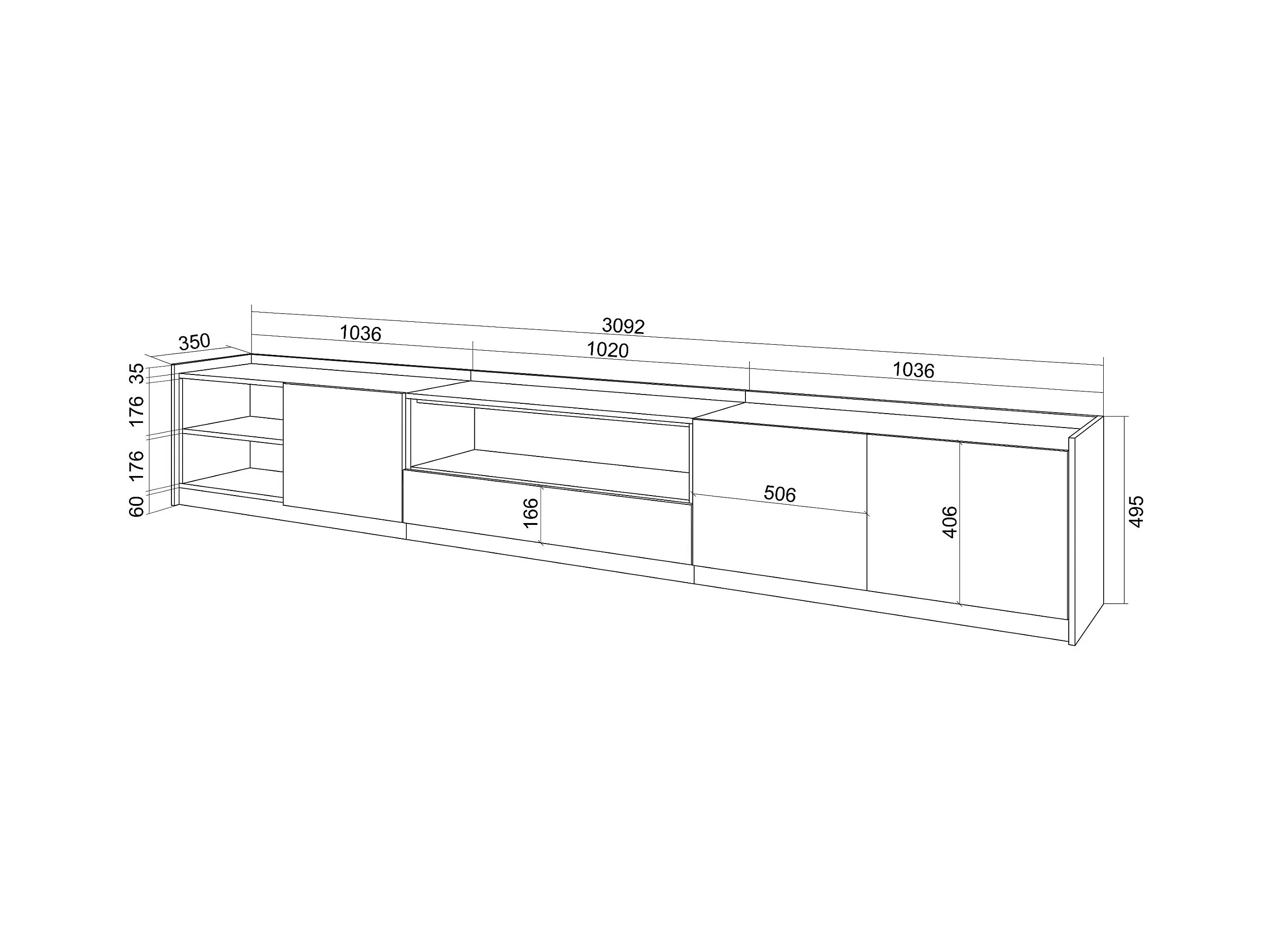 Meuble TV | Banc Télé, 310x50x37 cm, Pour les TV jusqu'à 80", Meubles de salon, Chêne et noir