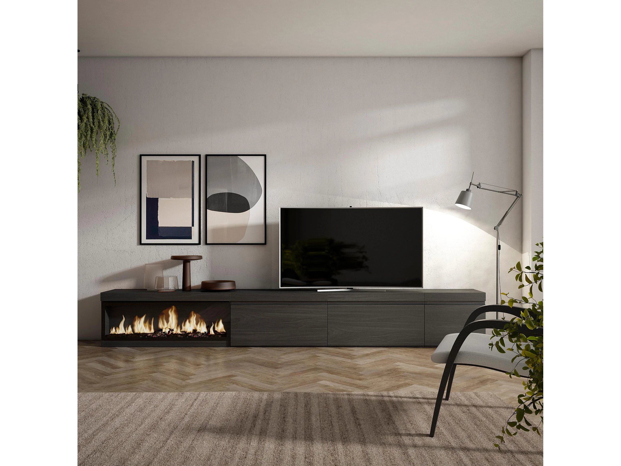 Meuble TV, Banc Télé, 317x35x45 cm, Cheminée électrique XXL, Noir