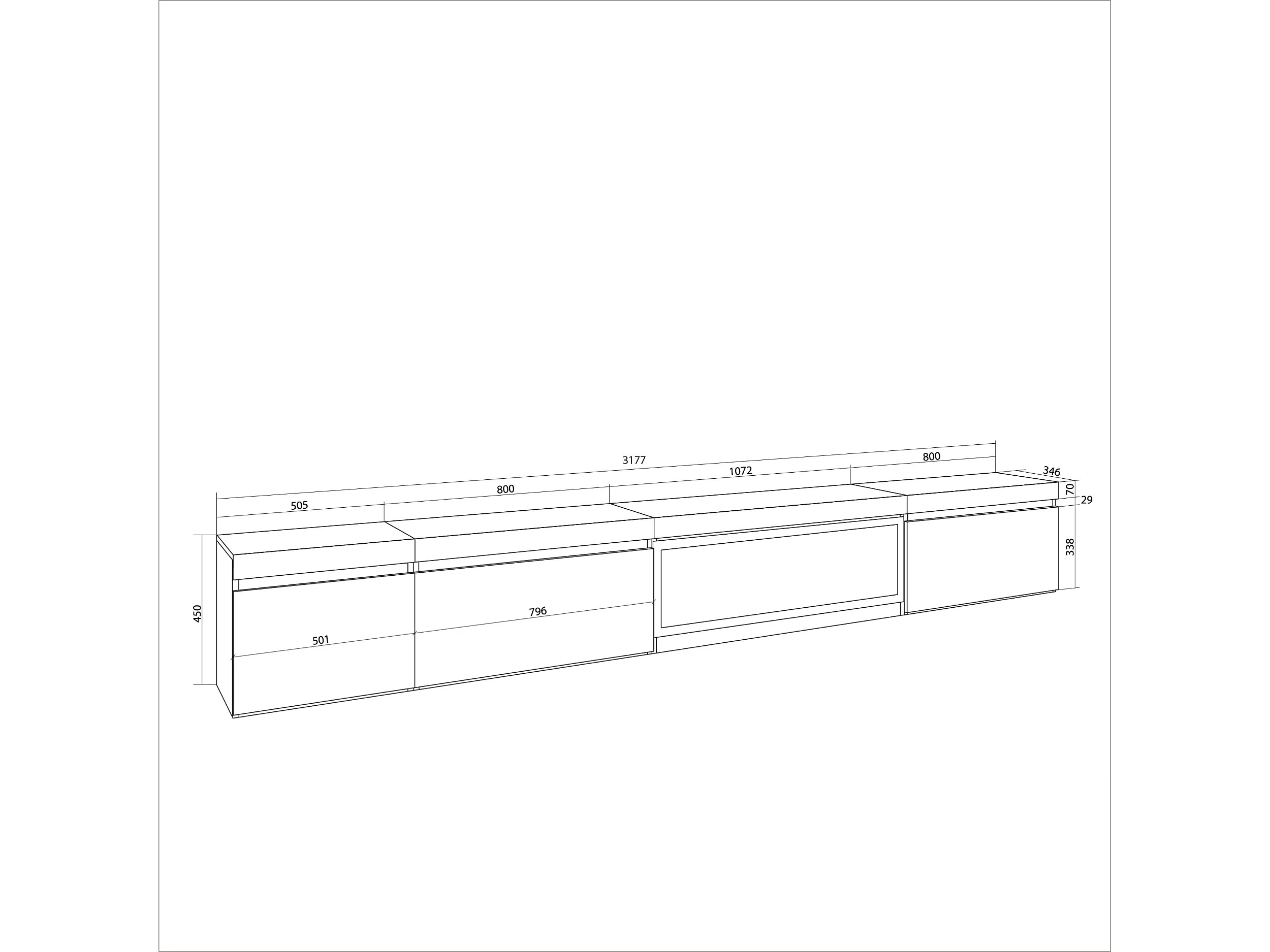 Meuble TV, Banc Télé, 317x35x45 cm, Cheminée électrique XXL, Noir