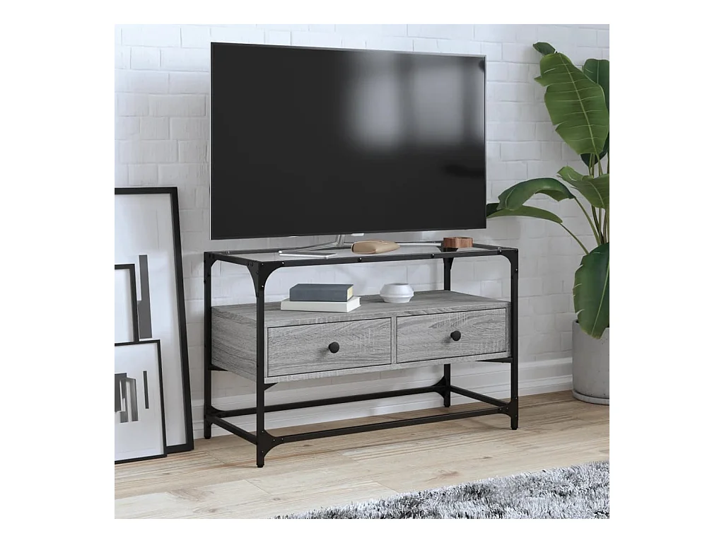 Meuble TV | Banc TV | Armoire TV avec dessus en verre sonoma gris bois d'ingénierie