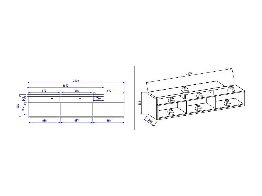 Meuble TV Bar 70 Pouces Chêne et Anthracite 3 Portes 6 Niches L 210 H 50.6 P 45.3 cm