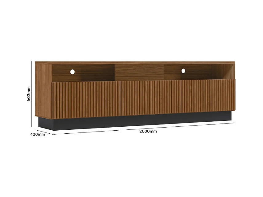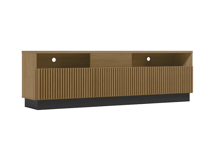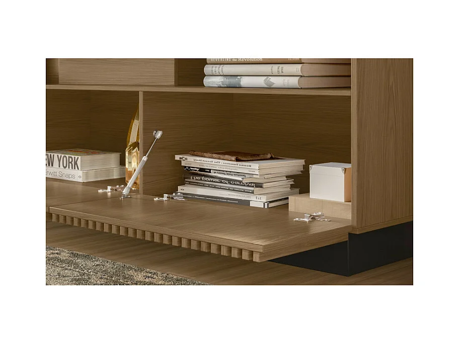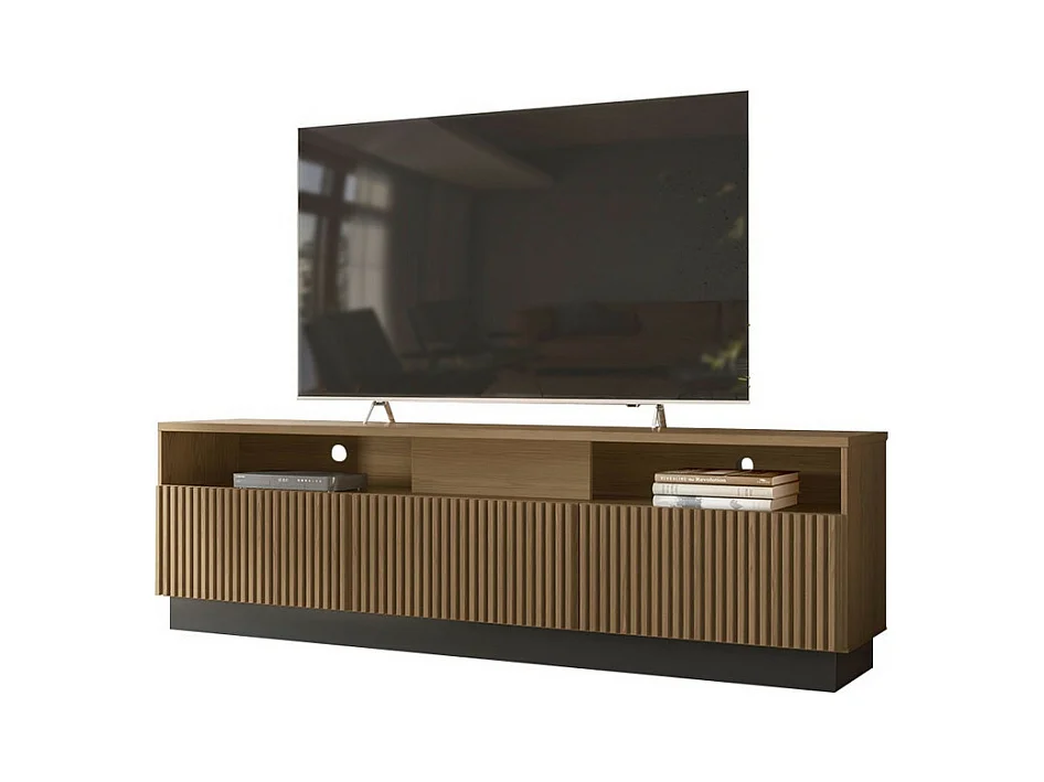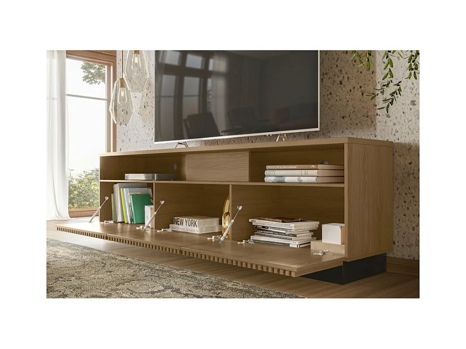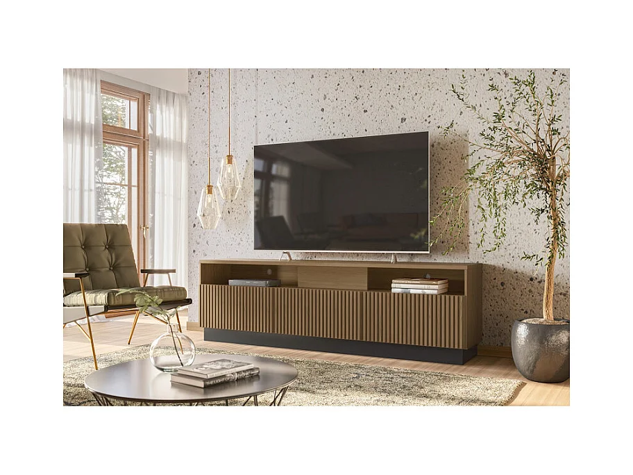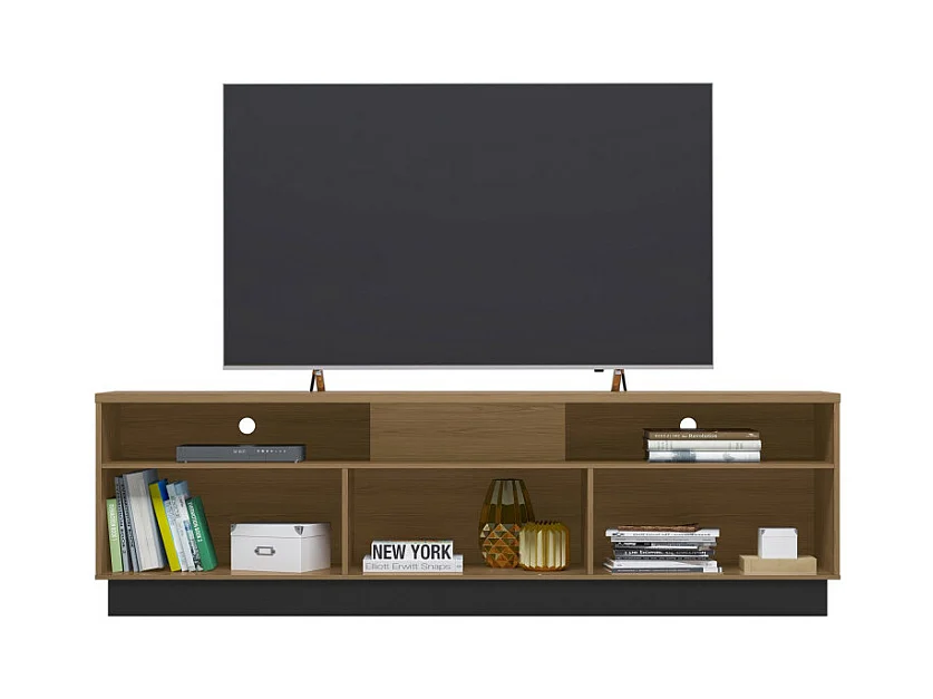 Meuble TV Bar 75 Pouces 4 Portes 5 Niches Noyer et Noir L 200 H 60.4 P 42 cm