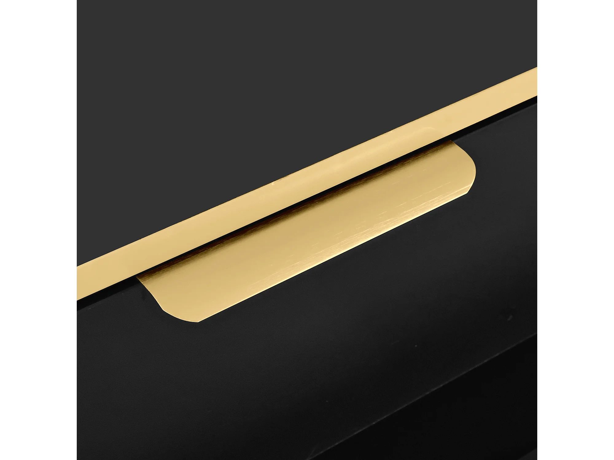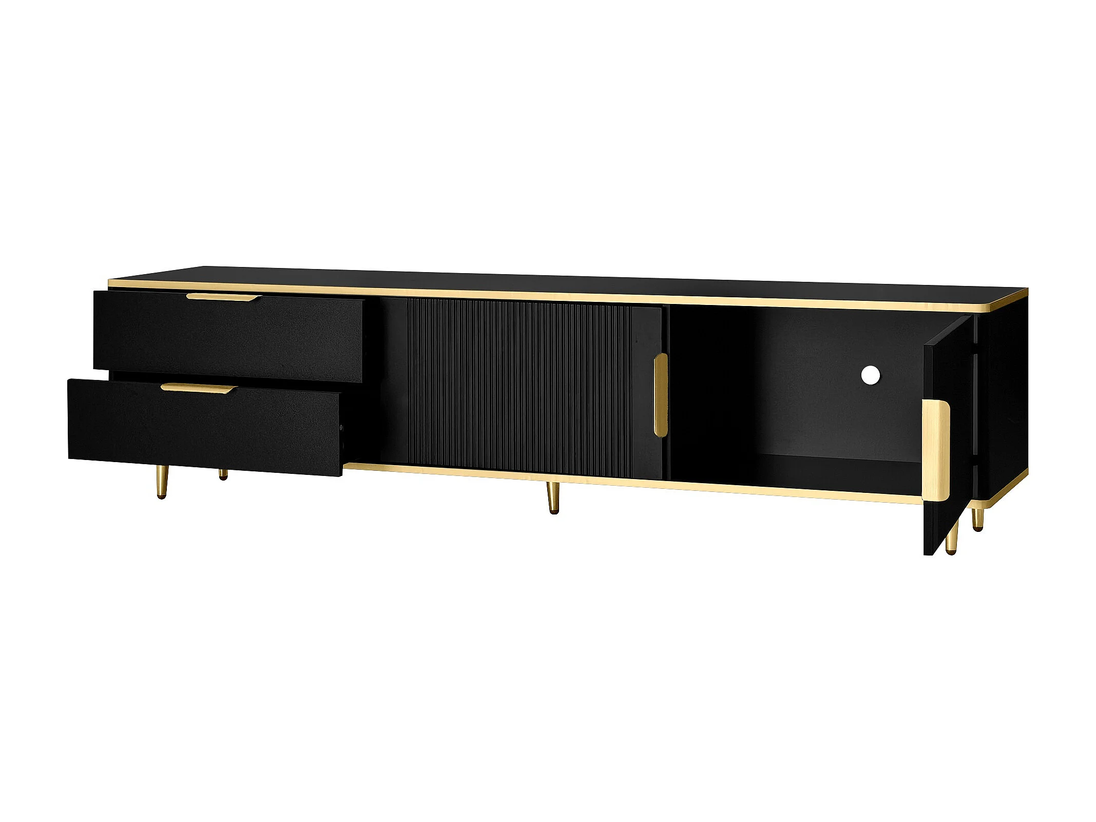 Meuble TV bas avec texture sculptée, armoire avec poignées et pieds dorés, noir, 175 x 40 x 45 cm