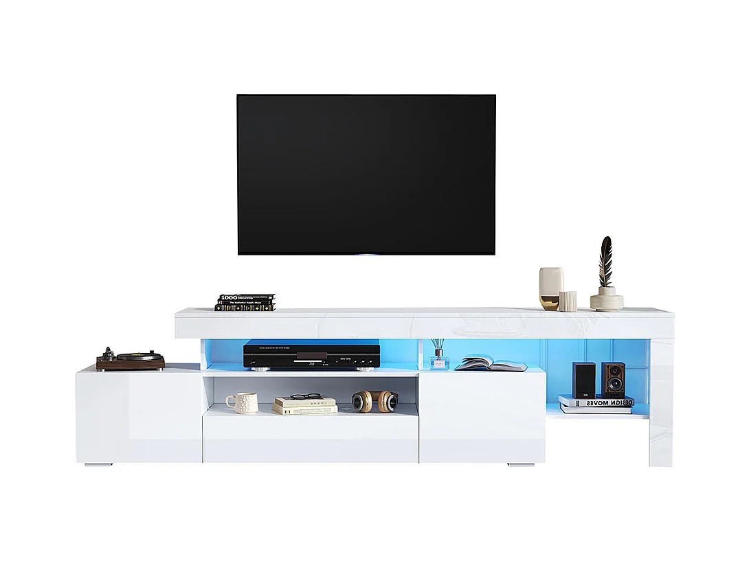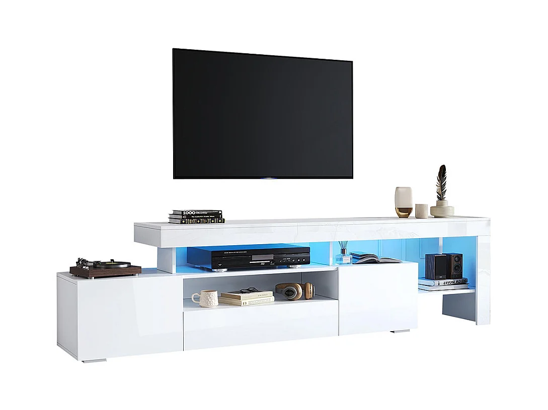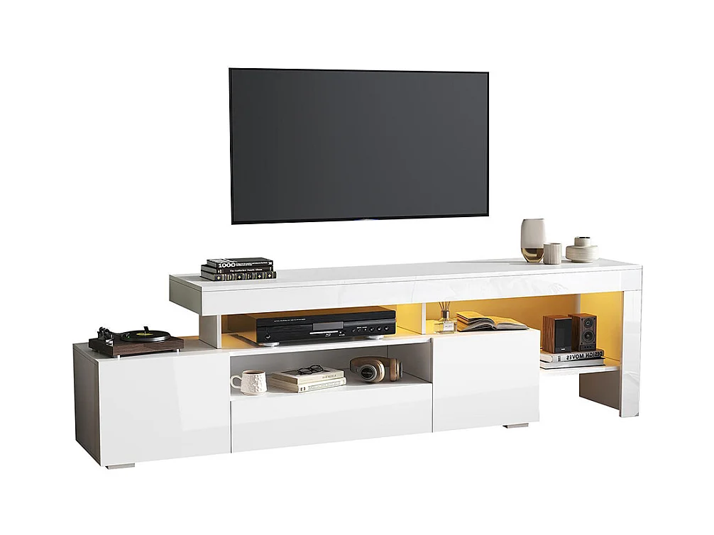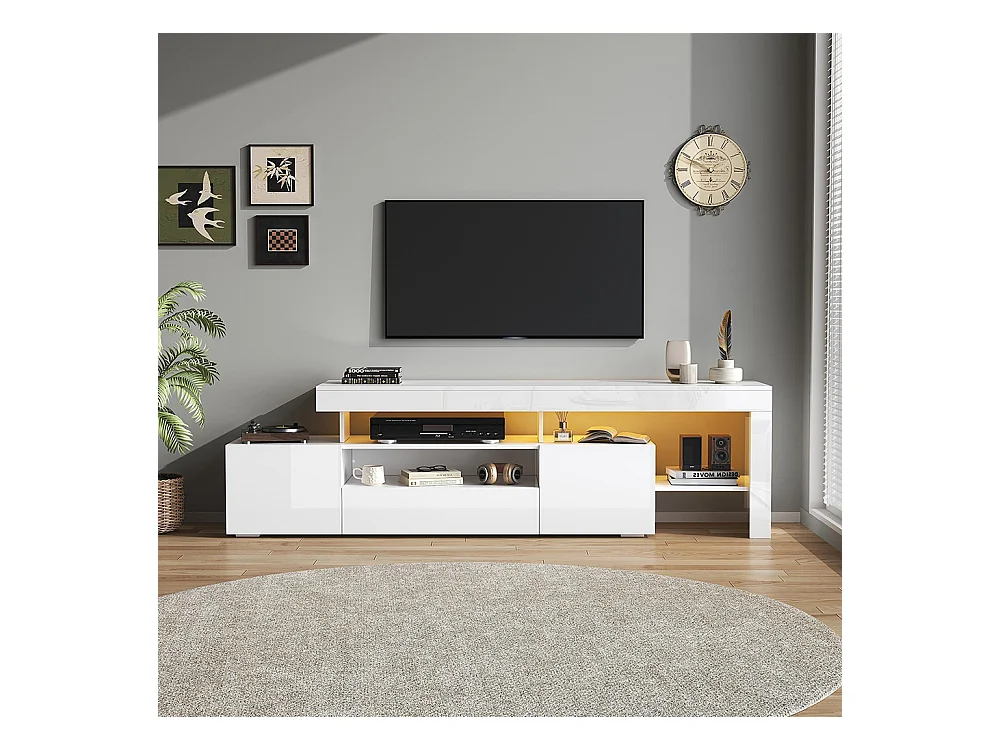 Meuble TV bas brillant 3 armoires LED blanc pour les téléviseurs jusqu'à 85 pouces
