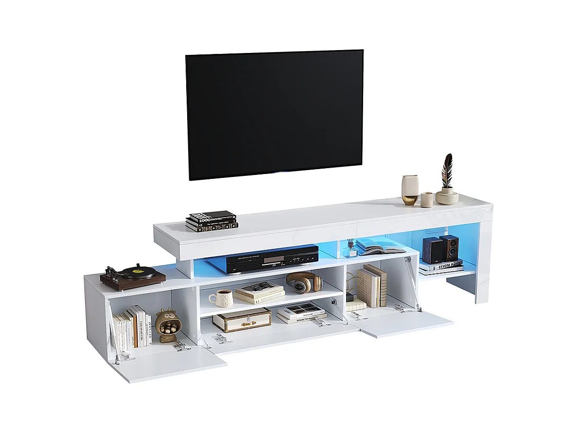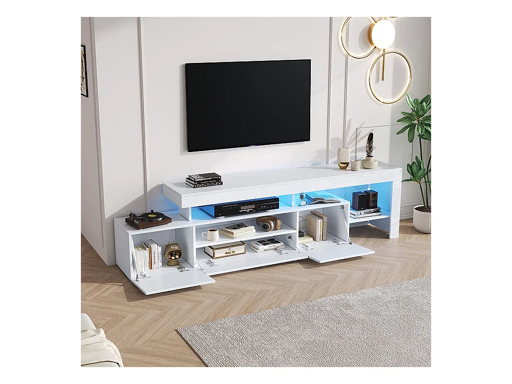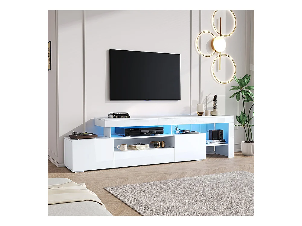 Meuble TV 2 armoires LED bande lumineuse brillant 8 étagères MDF TV 70 pouces moderne