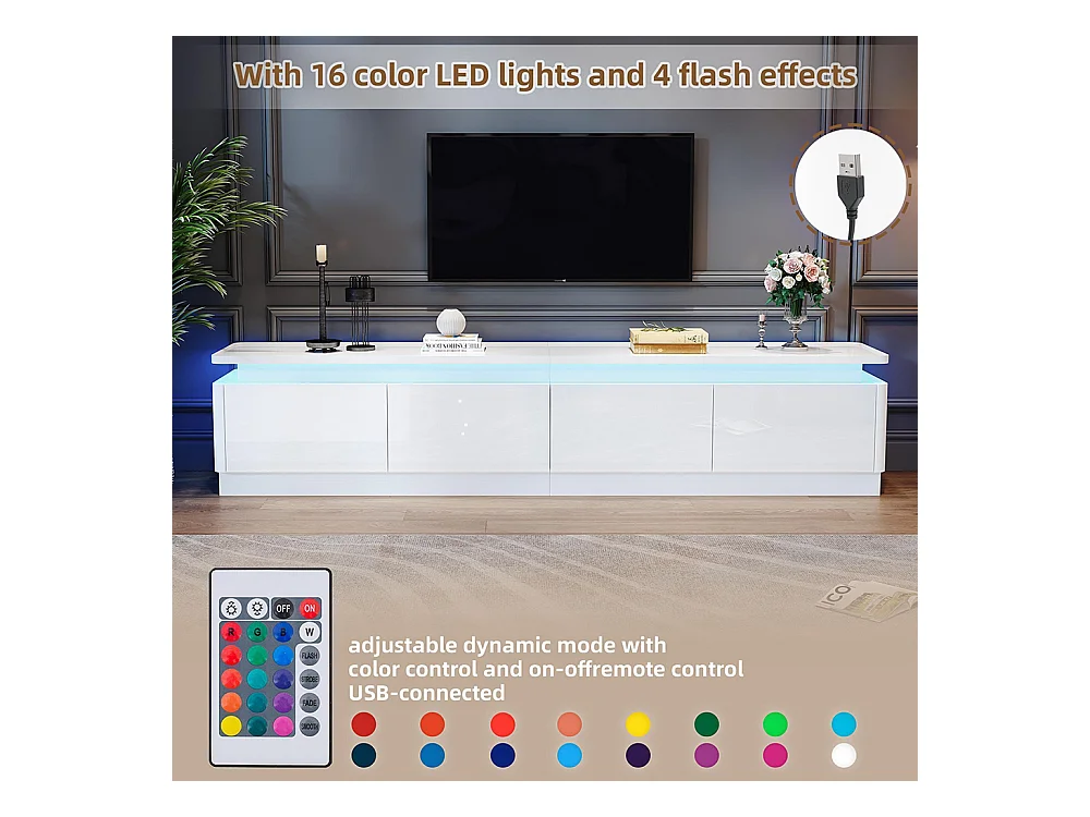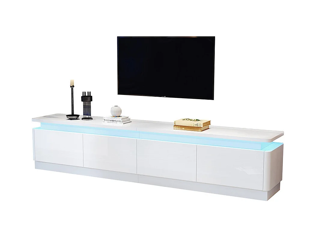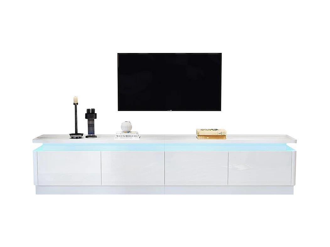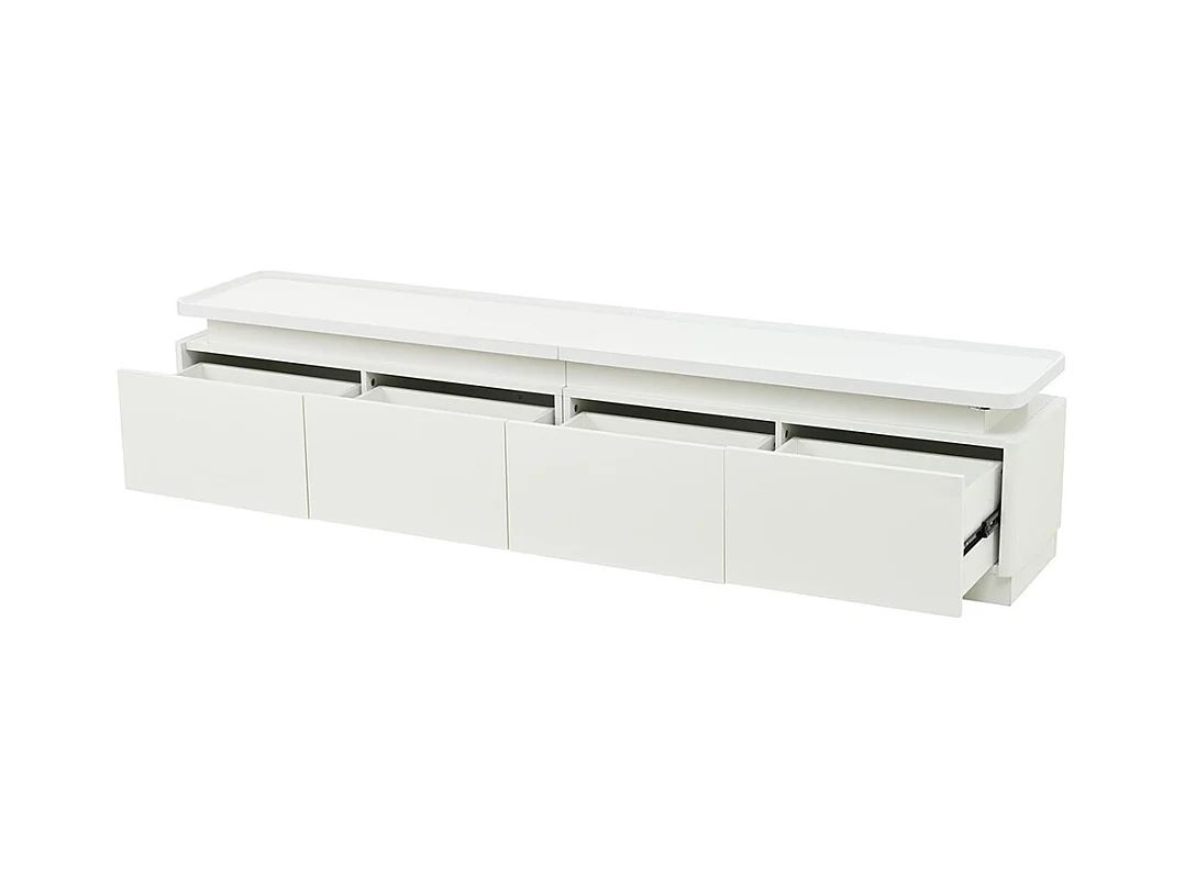Meuble TV bas brillant 4 tiroirs LED TV 80 pouces blanc