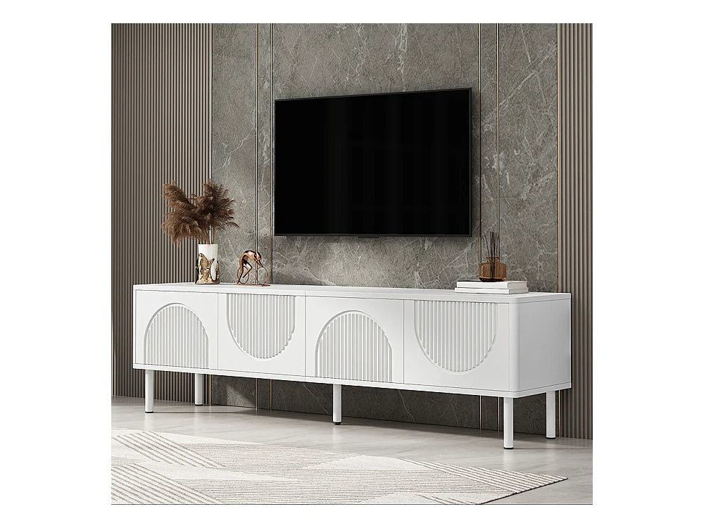 Meuble TV moderne 4 portes design élégant avec charnières à fermeture douce blanc