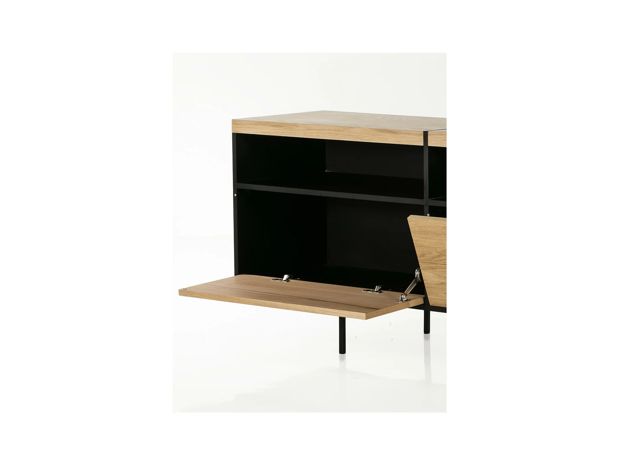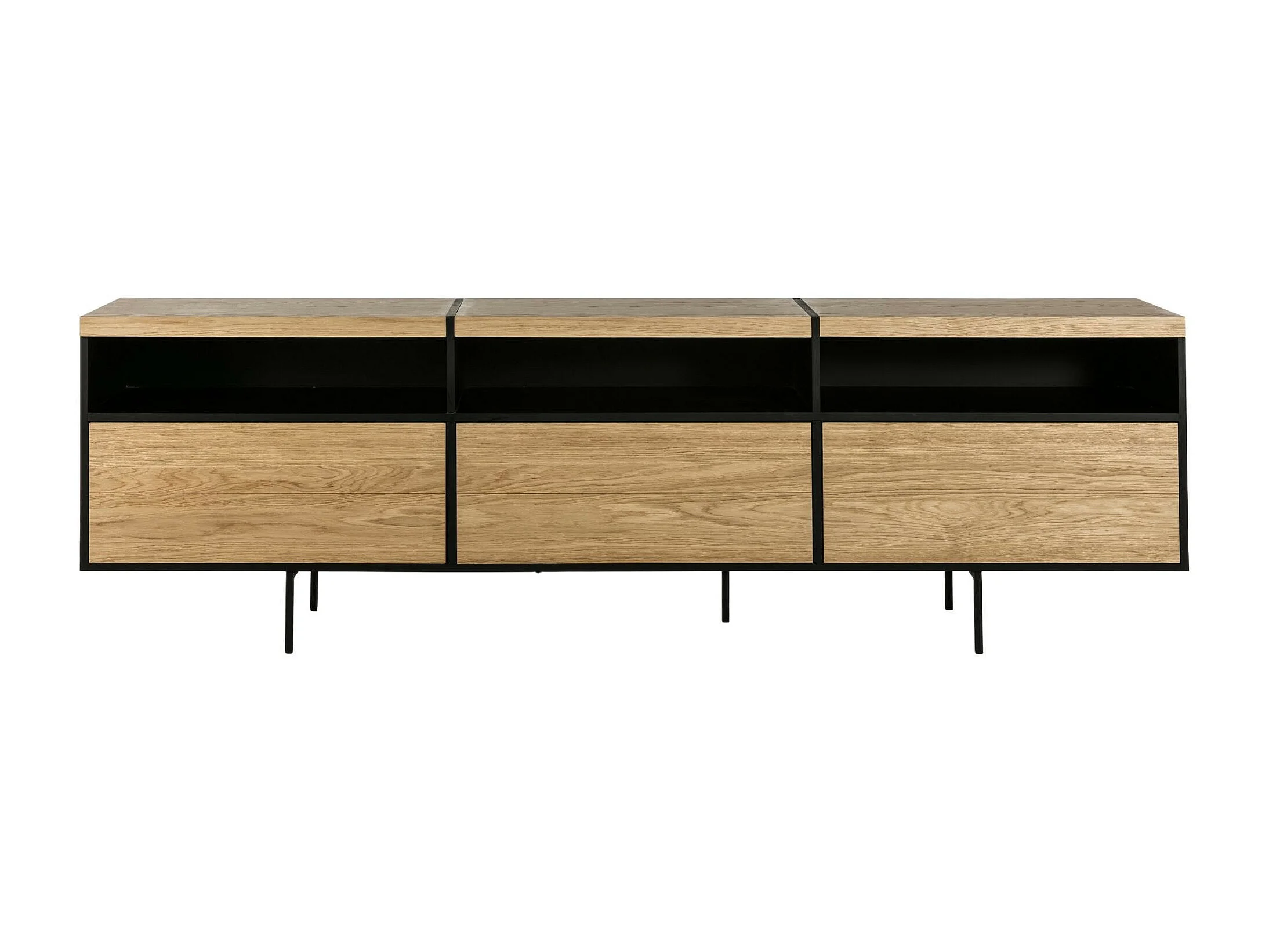 Meuble TV bas moderne en bois et métal 3 portes L220 - BRIGHTON