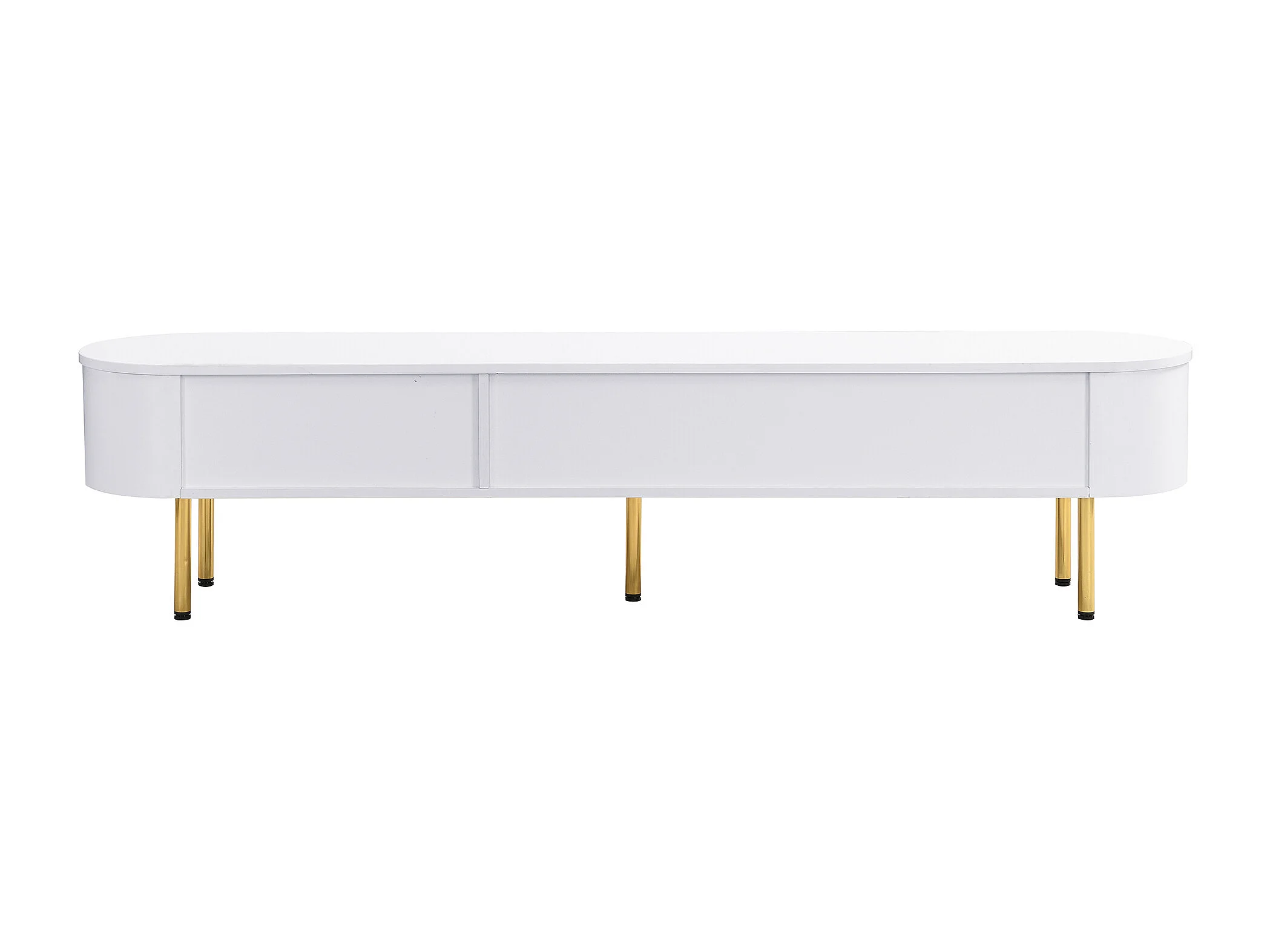Meuble TV Bas, Plateau de Table Incurvé, Tiroirs, Pieds Dorés, Meuble TV de Salon, 174x35x41cm,Blanc