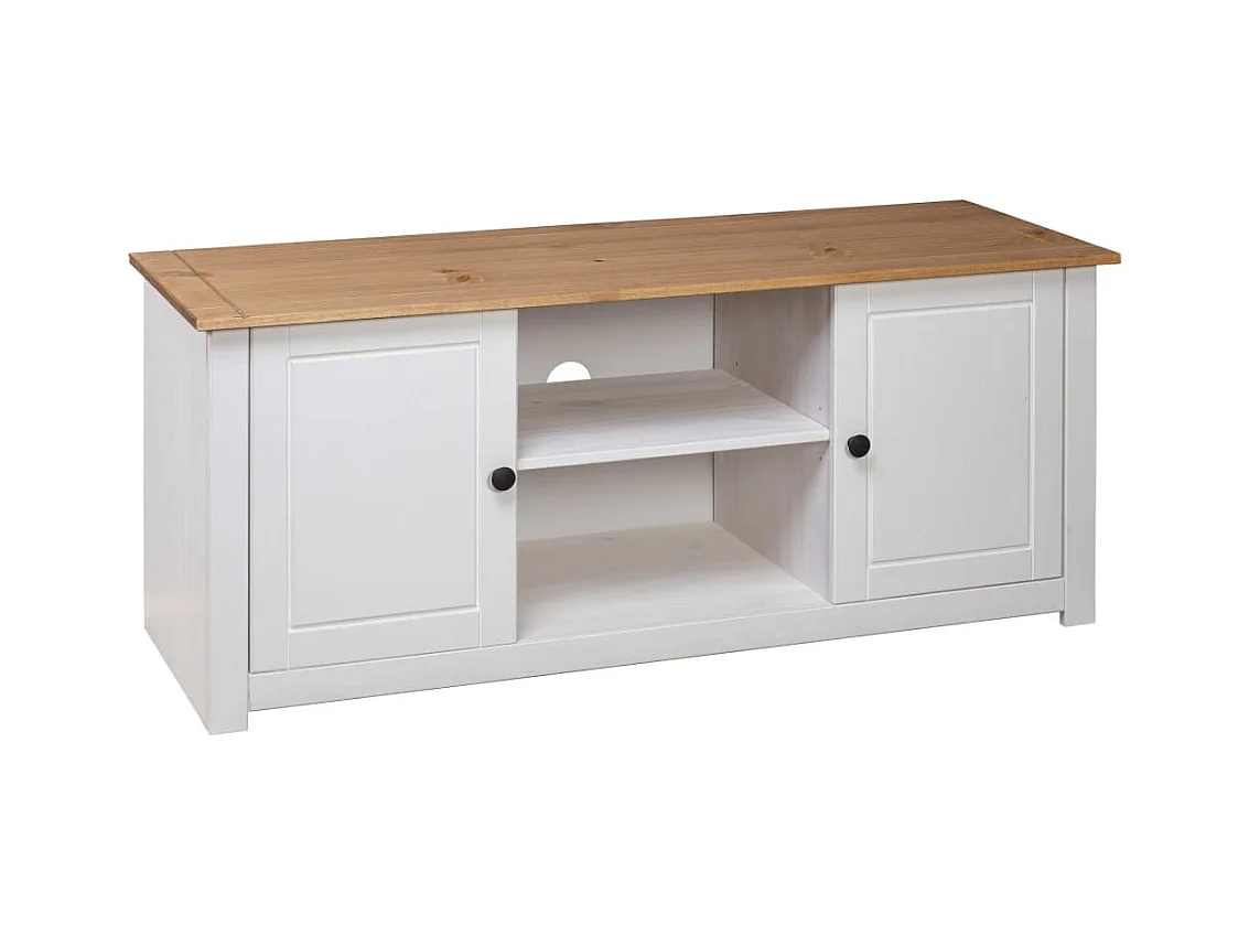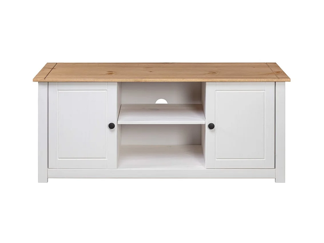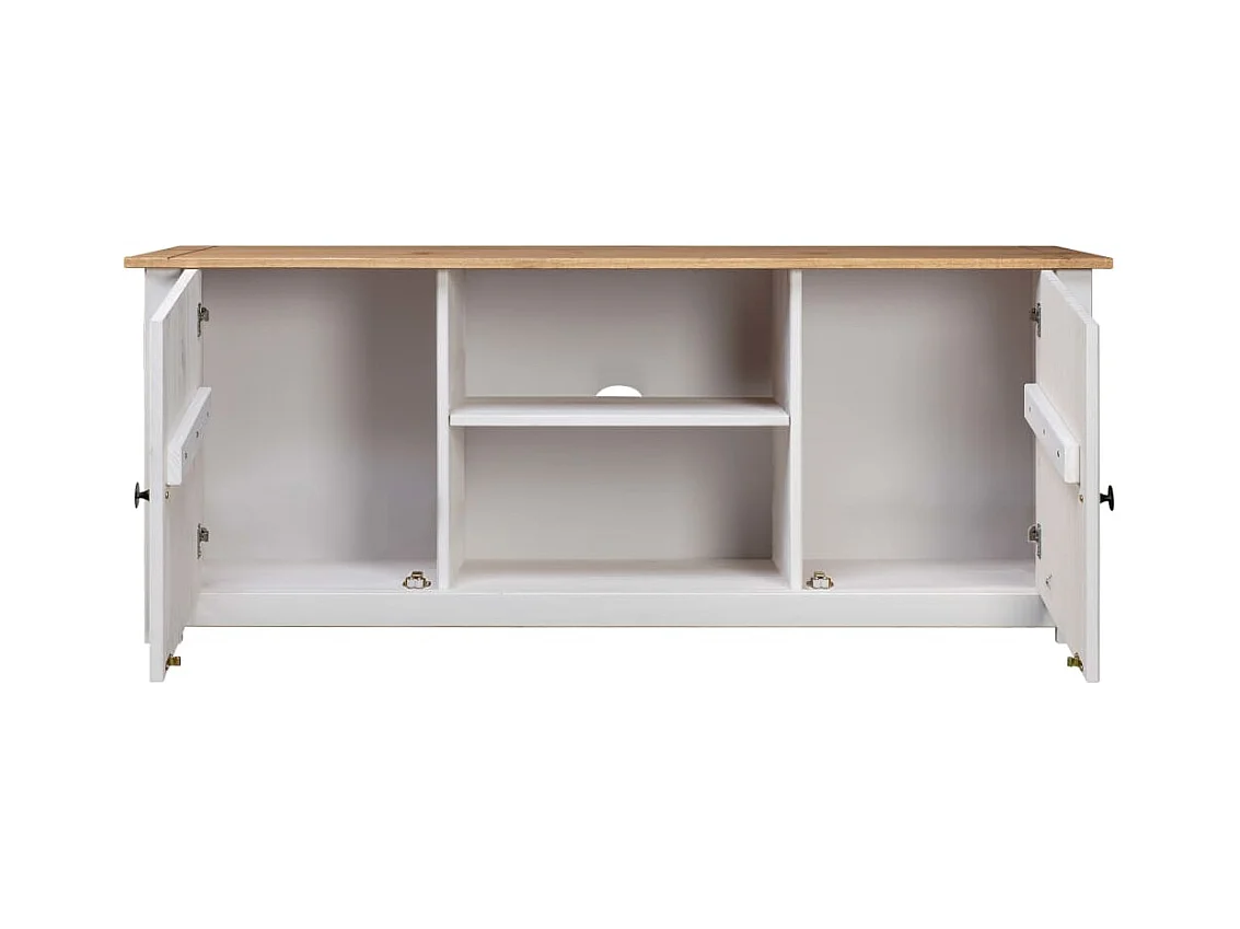 Meuble TV Blanc 120x40x50 cm Bois de pin massif Gamme Panama BE85697