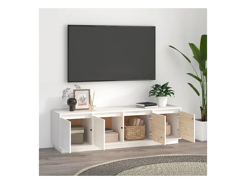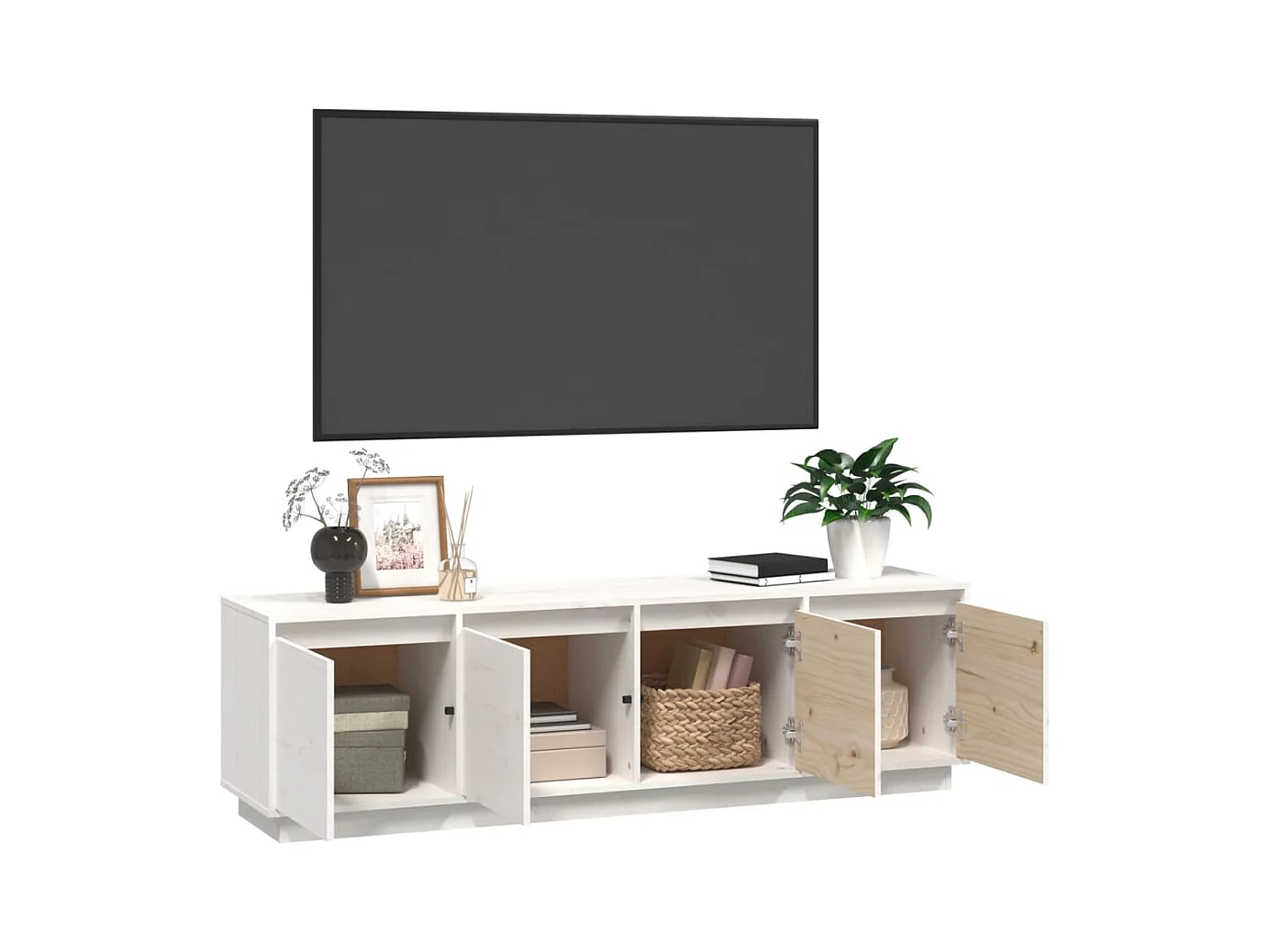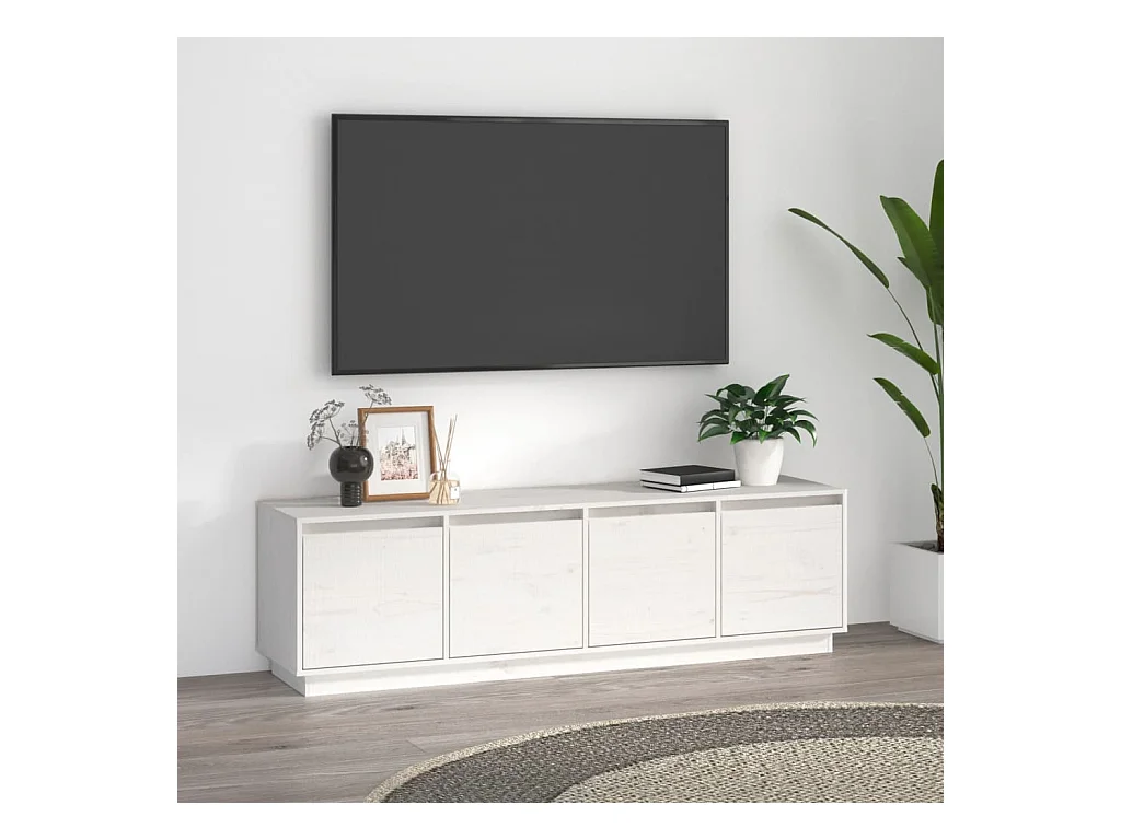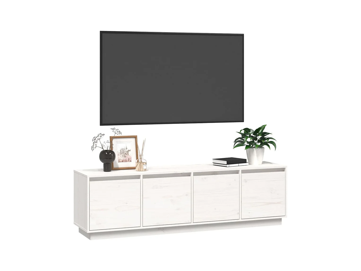 Meuble TV Blanc 156x37x45 cm Bois de pin massif