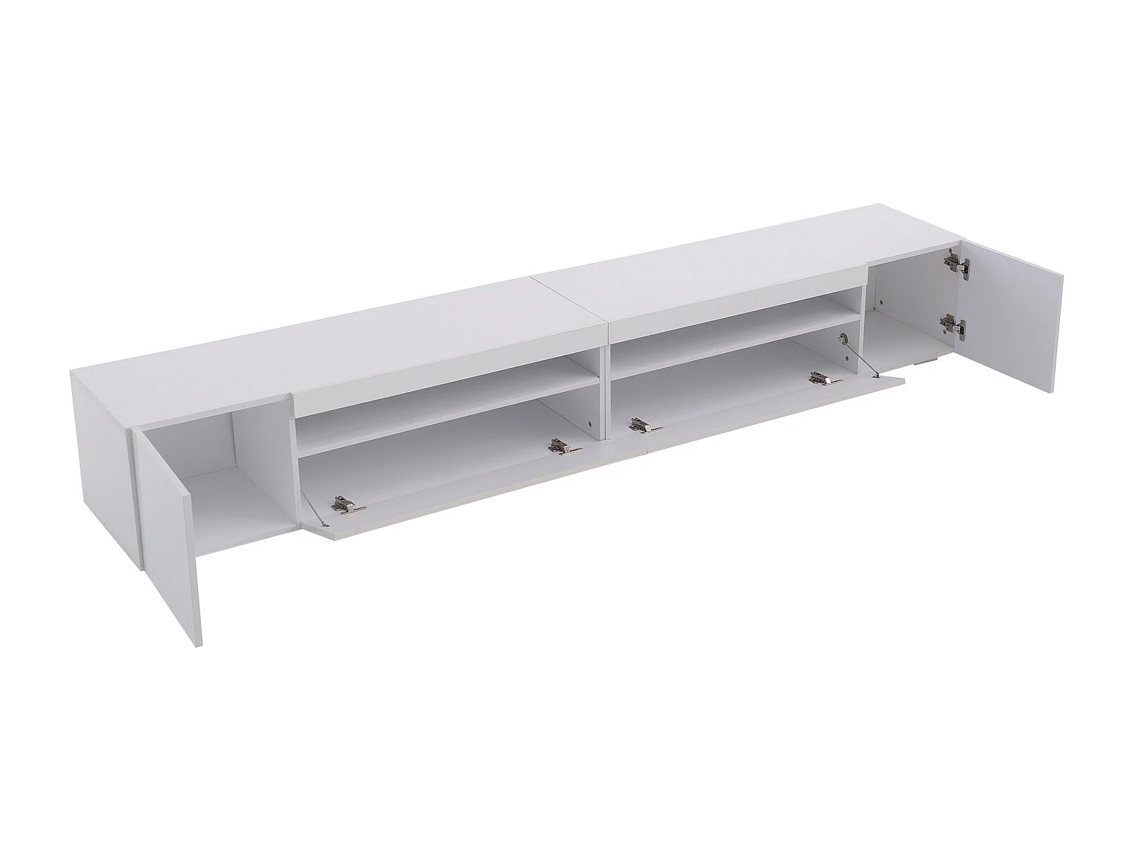 Meuble TV Blanc 260x35x40 cm , 3 niveaux , 3 compartiments , 2 portes , éclairage LED Réglable