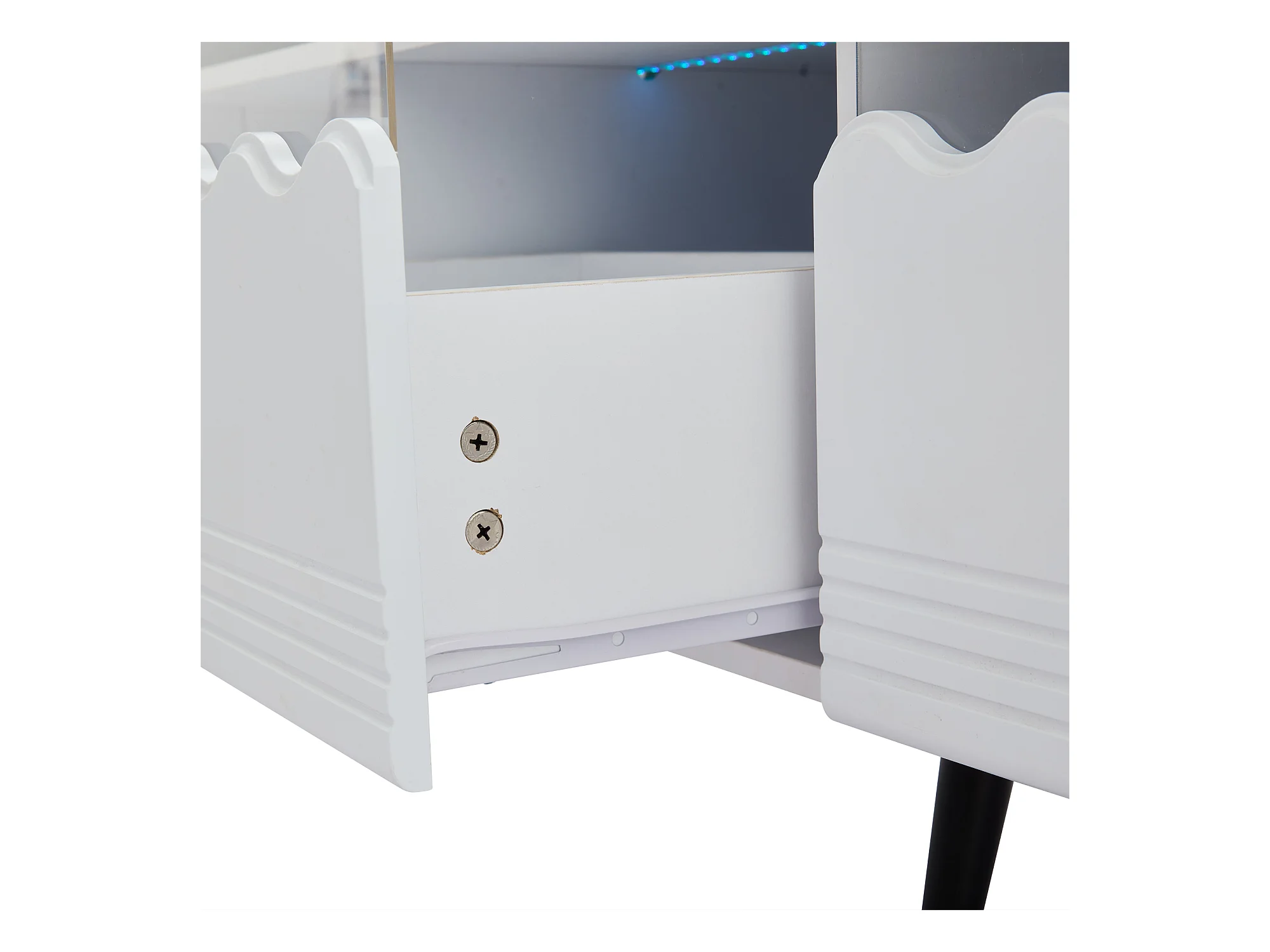Meuble TV blanc avec éclairage LED, 2 tiroirs et 2 portes, pour salon et chambre