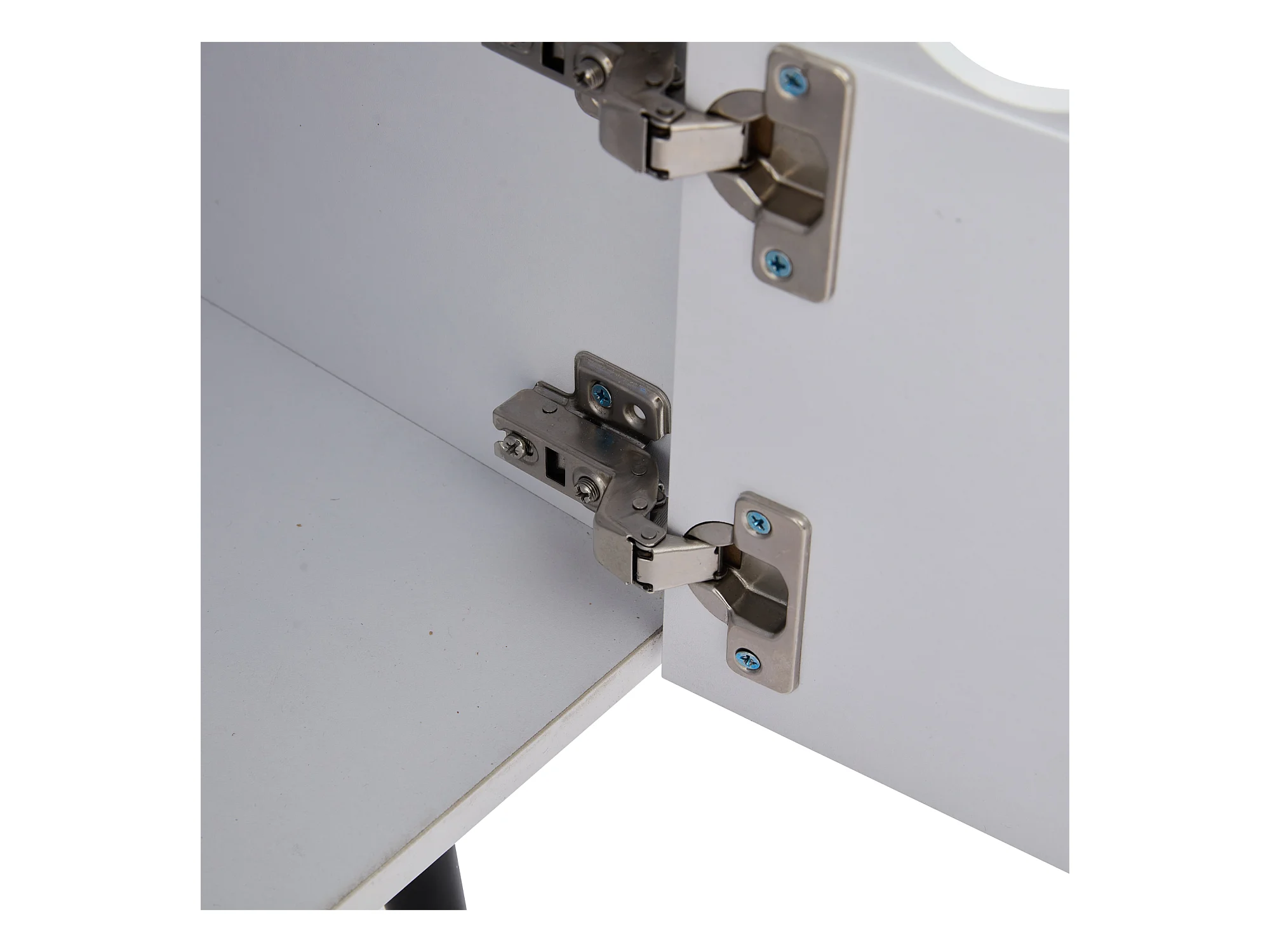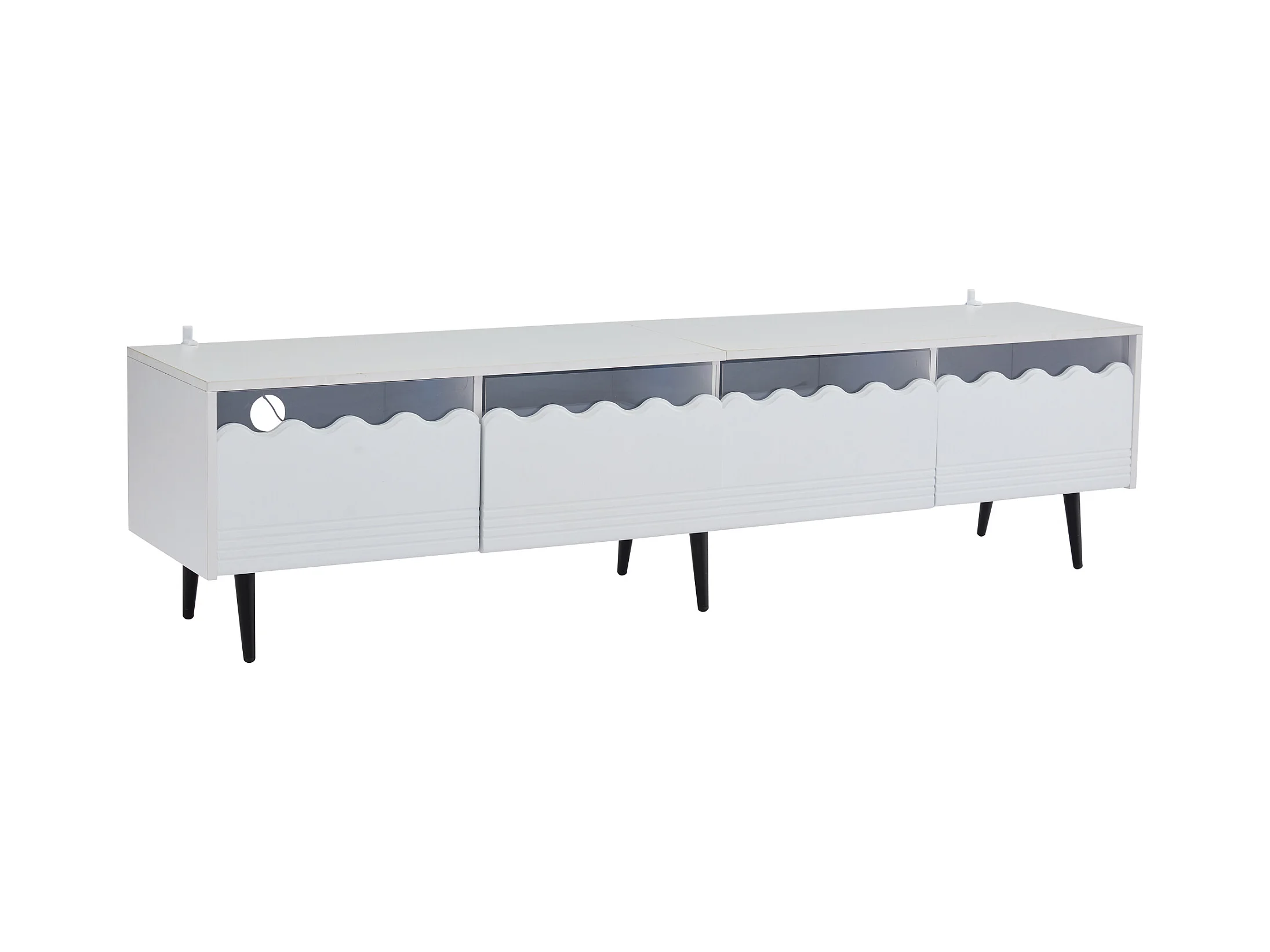 Meuble TV blanc avec 2 portes et étagères en verre, éclairage LED - pour salon et bureaux