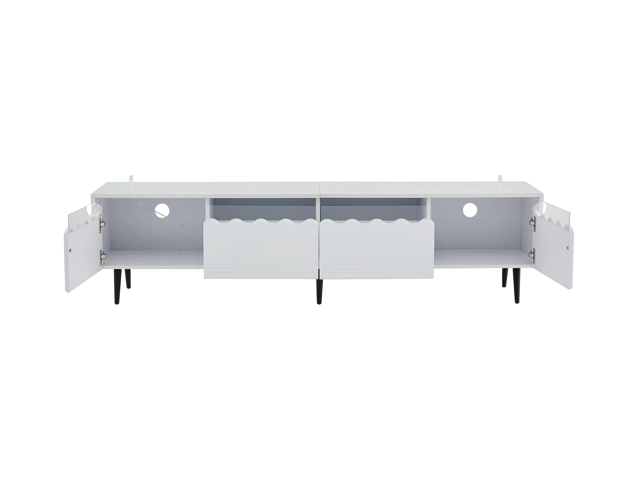 Meuble TV 180 cm avec éclairage LED, 2 portes et 1 tiroir de rangement - Blanc