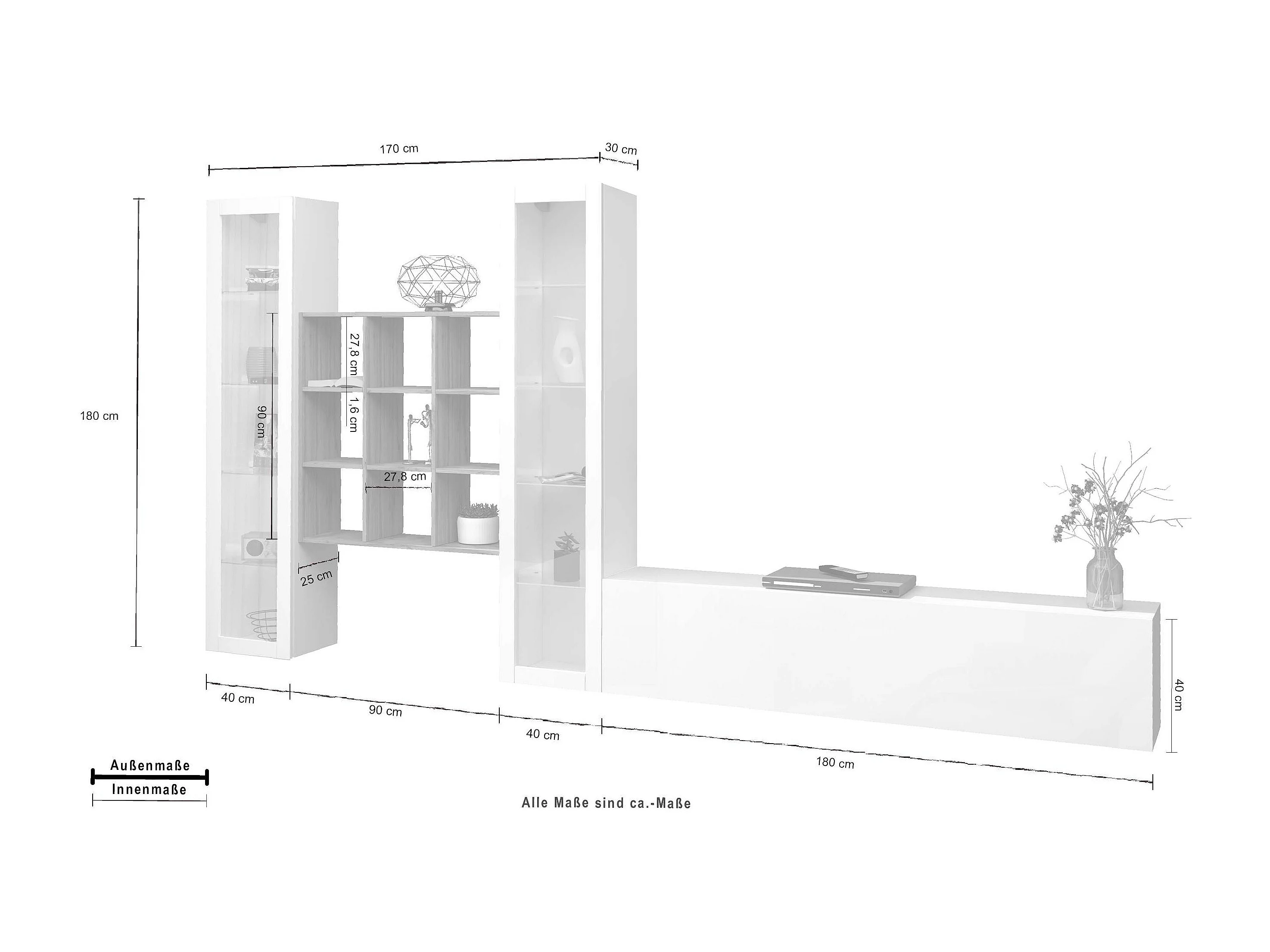 Meuble TV blanc bibliothèque en bois 2 vitrines Onir WH