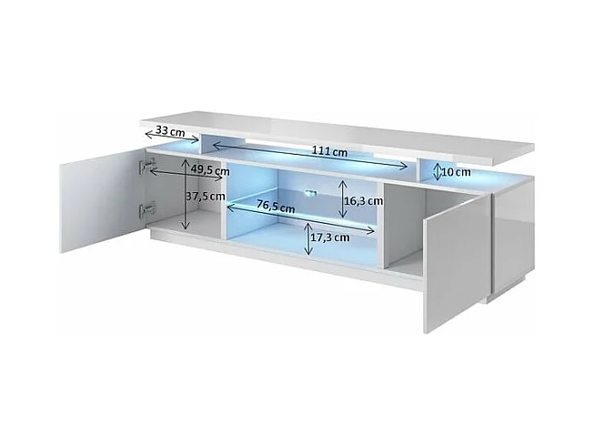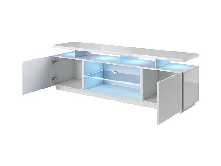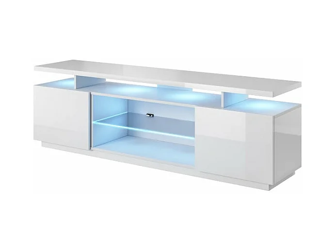 Meuble TV blanc brillant 180 cm à LED Zohra - blanc